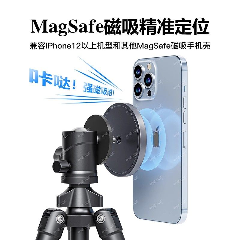适用于iPhone手机支架转接头车载支架配件1/4螺丝孔磁吸头相机单反摄影通用磁吸magsafe支架铝合金属17mm球头