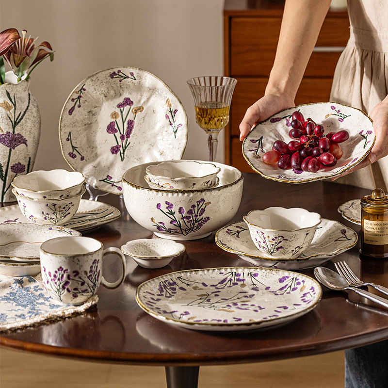 摩登主妇釉下彩餐具陶瓷饭碗家用2025新款高颜值碗具餐盘子面汤碗