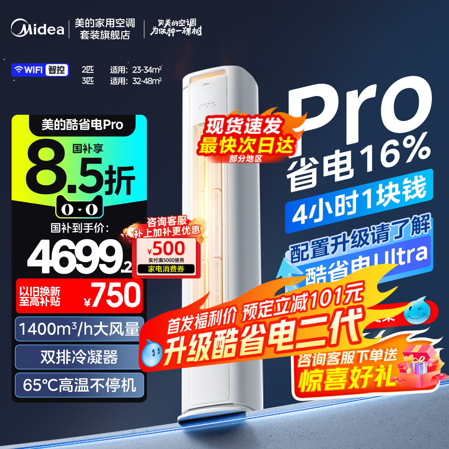 美的酷省电空调官方正品立式一级能效变频冷暖官网2匹3匹客厅柜机