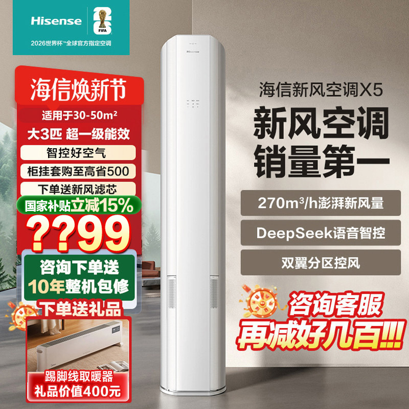 新品海信新风空调大3/大1.5匹X5家用立式一级能效客厅柜挂多链接