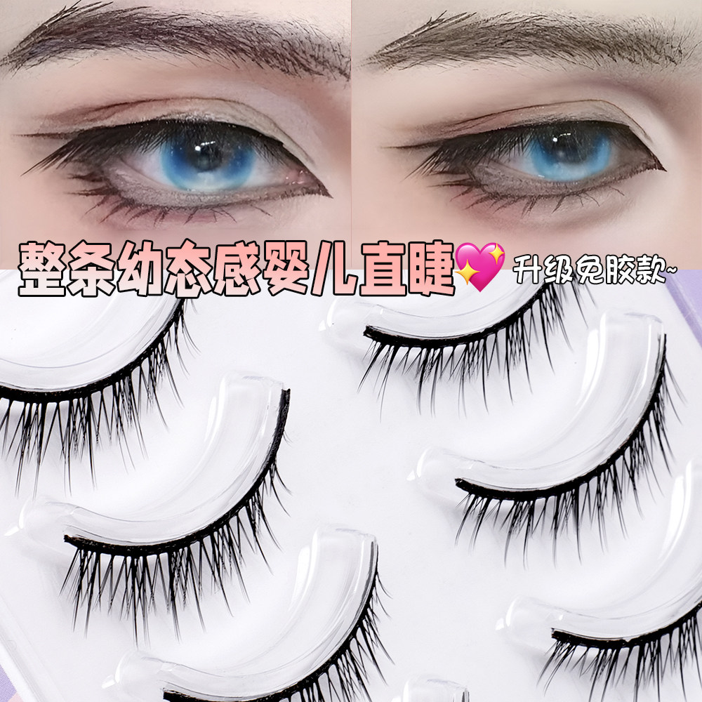 硬梗婴儿直免胶一片式假睫毛自然原生少年感成男cos睫可撑双眼皮