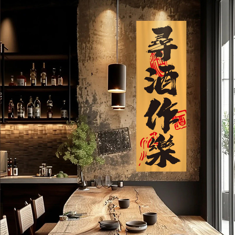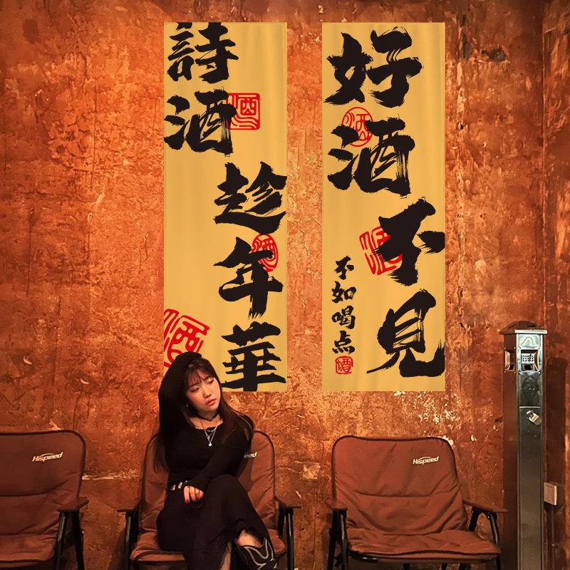 小酒馆装饰挂布网红打卡啤酒烧烤店挂布火锅店美食餐饮酒吧布帘工业风氛围感布置墙布毛笔字文化书法背景布