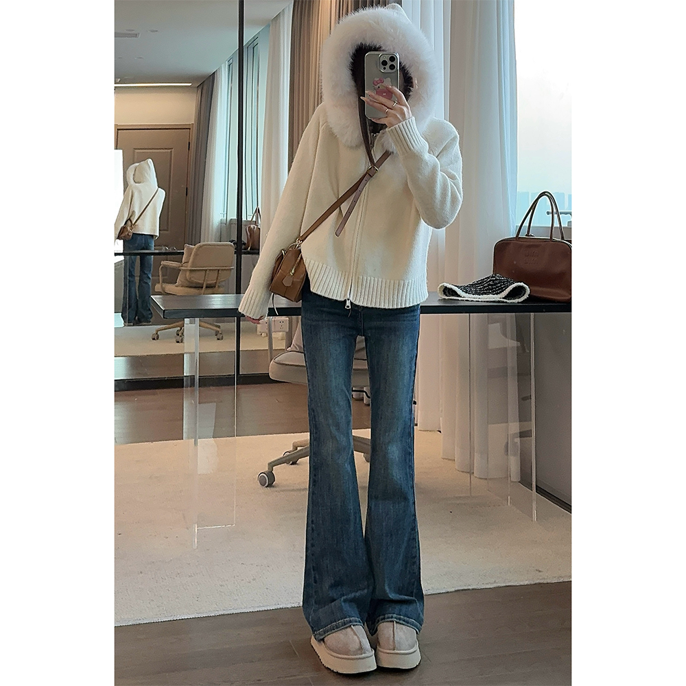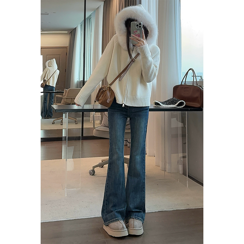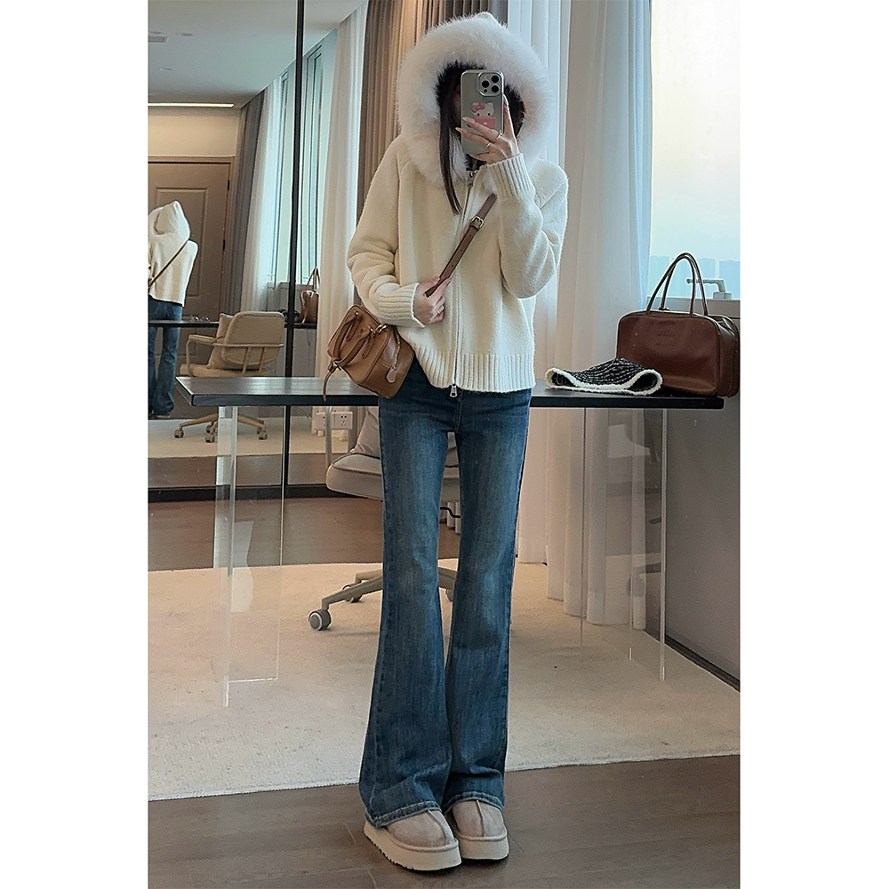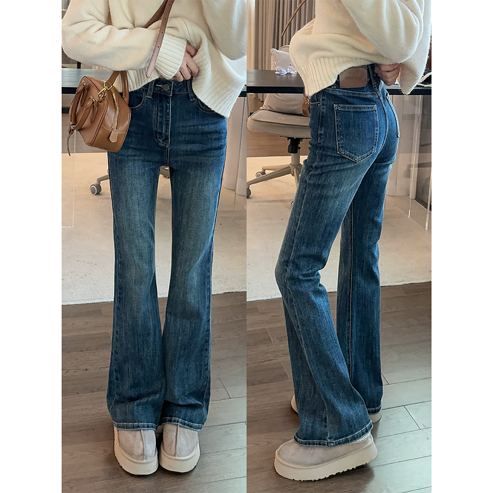 王家有鱼加绒复古微喇裤爆款时尚显瘦女裤2025秋冬新款百搭牛仔裤