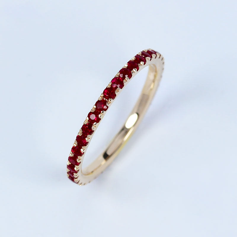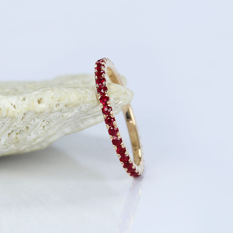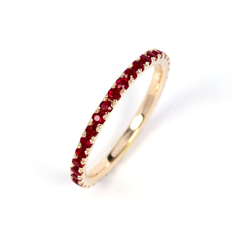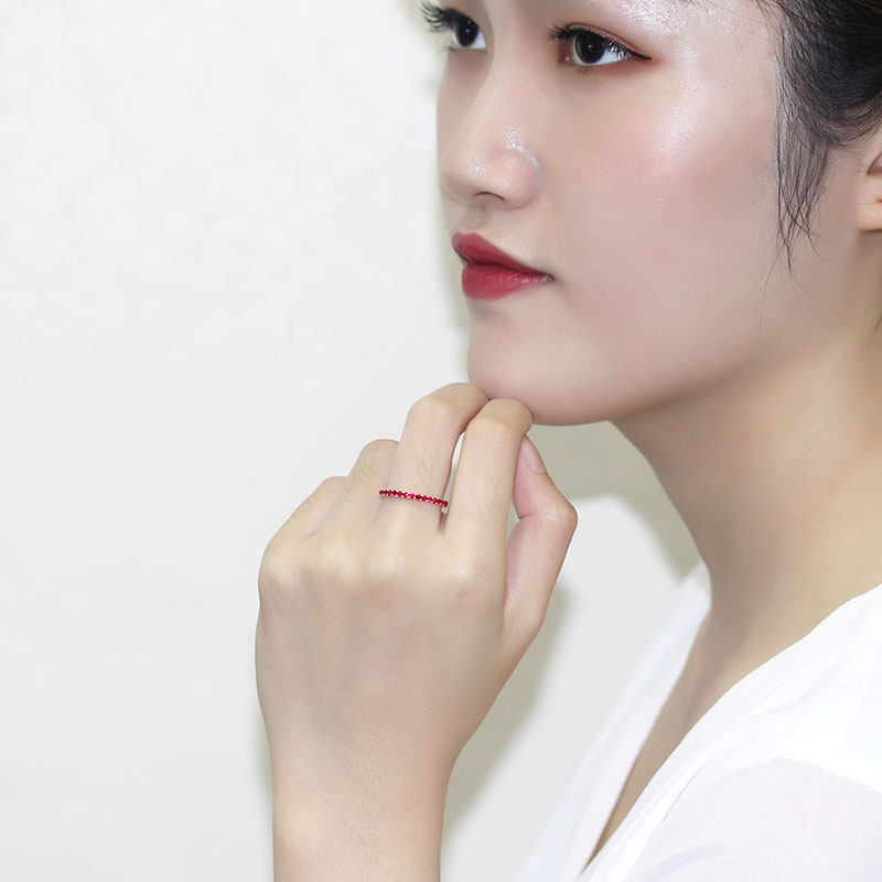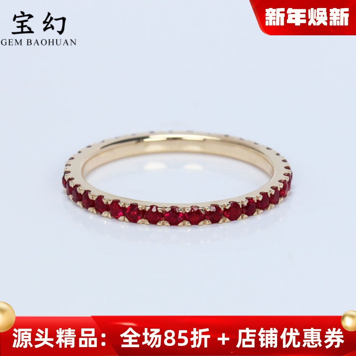 加大厚实18K玫瑰金天然鸽血红宝石满圈排戒 彩金正红色尾戒指环女