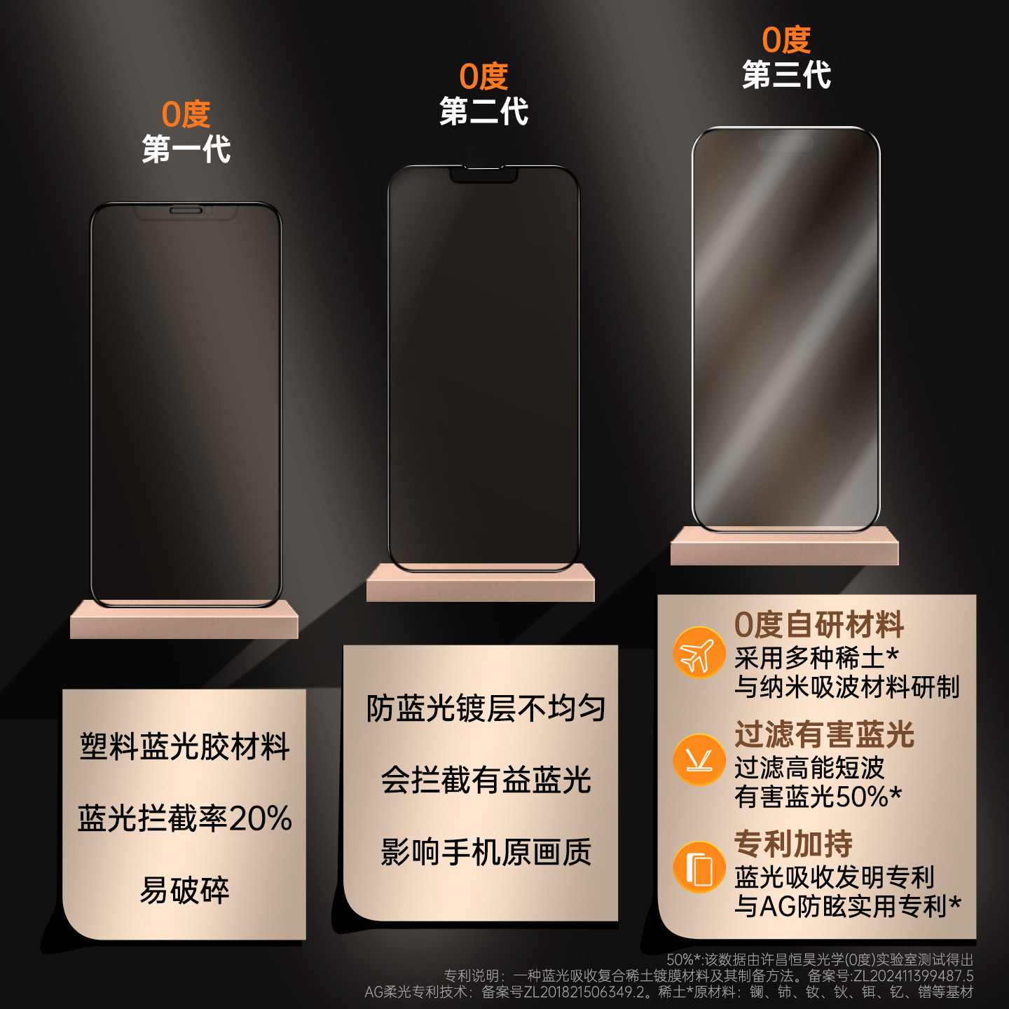 0度适用于苹果17钢化膜iphone16pro手机贴膜抗蓝光护眼16promax全屏覆盖康宁15/14抗指纹17pro/17air屏保防尘