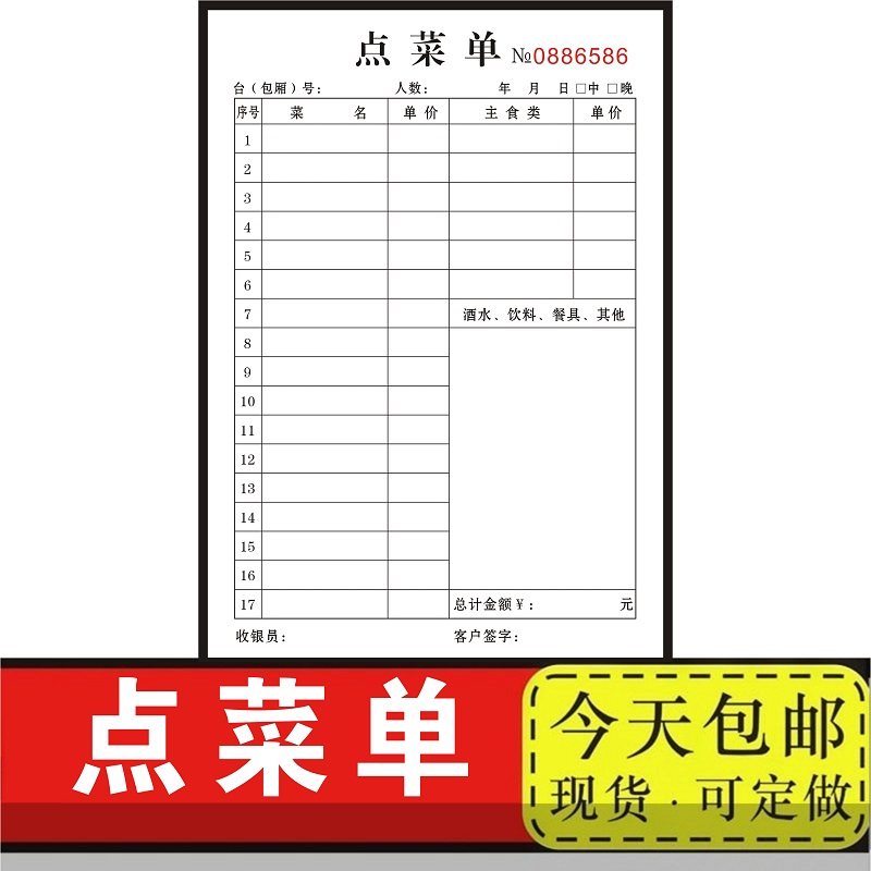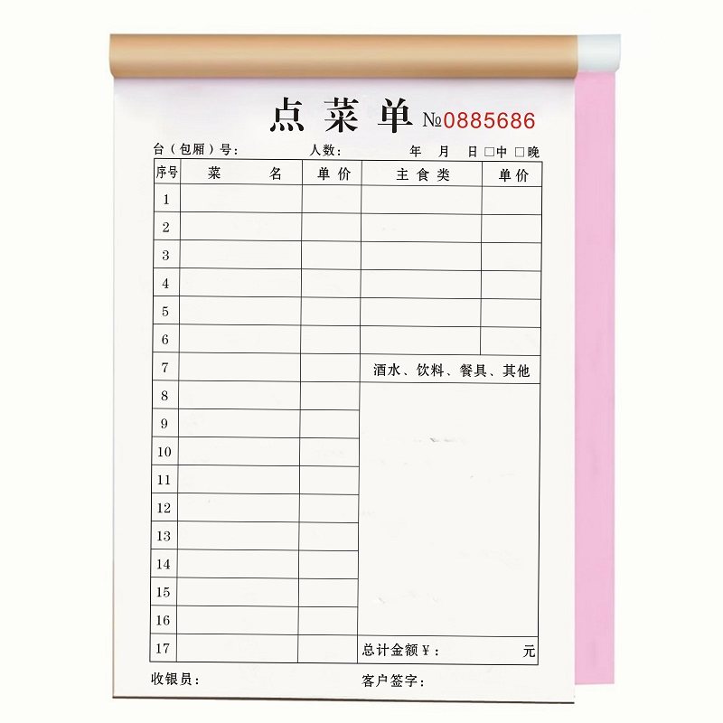 点菜单二联定制酒店餐馆饭店铺开单本三联手写通用加厚记菜本子2联3连单据餐饮火锅1联单印刷大款票据4四联单