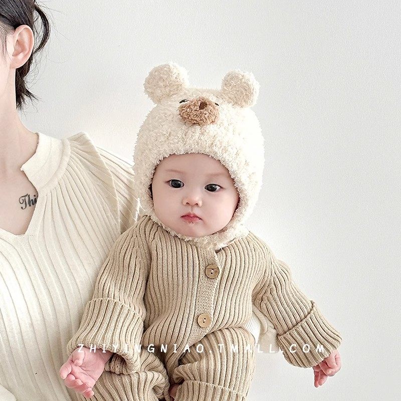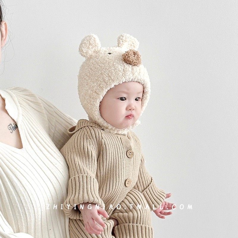 婴儿帽子秋冬季可爱男宝宝保暖护耳帽婴幼儿毛线帽小月龄冬季超萌