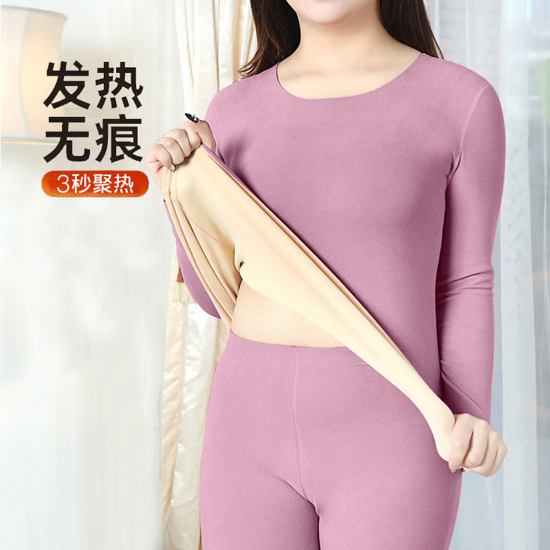 无痕发热保暖内衣女套装加厚加绒德秋衣秋裤一体大码打底棉毛衫冬