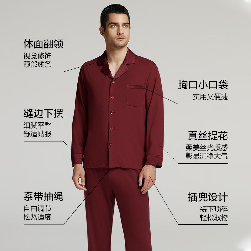 【开运系列】爱慕先生秋冬情侣本命年红品含真丝家居套装男睡衣女
