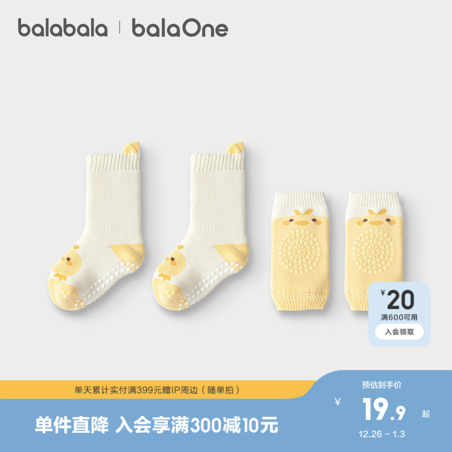 巴拉巴拉balaOne宝宝袜子冬保暖袜婴幼儿短袜防着凉提花护膝套装
