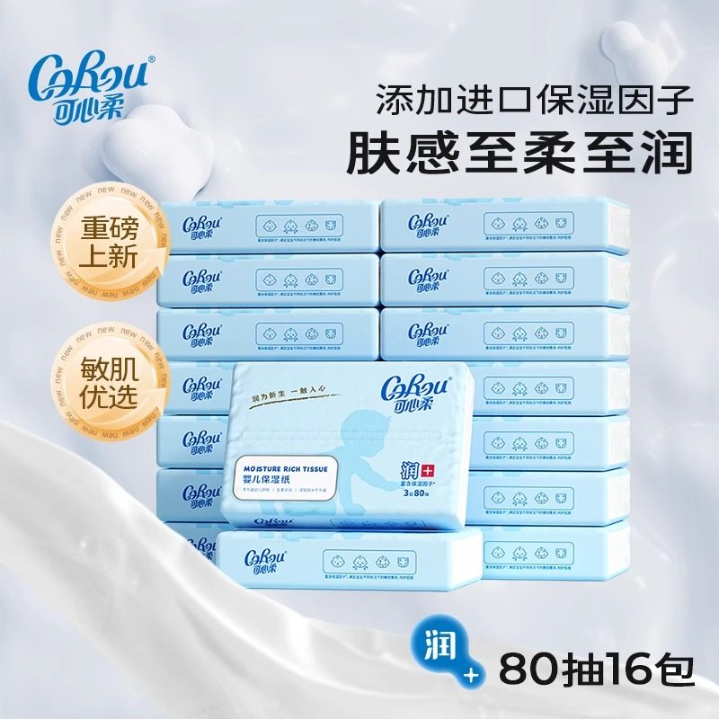 可心柔婴儿柔纸巾宝宝面巾纸抽纸云柔巾80保湿柔润柔软抽取式护鼻