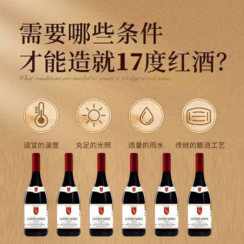 【487人收藏】法国进口赤霞珠红酒17度AOP城堡干红葡萄酒六瓶过节