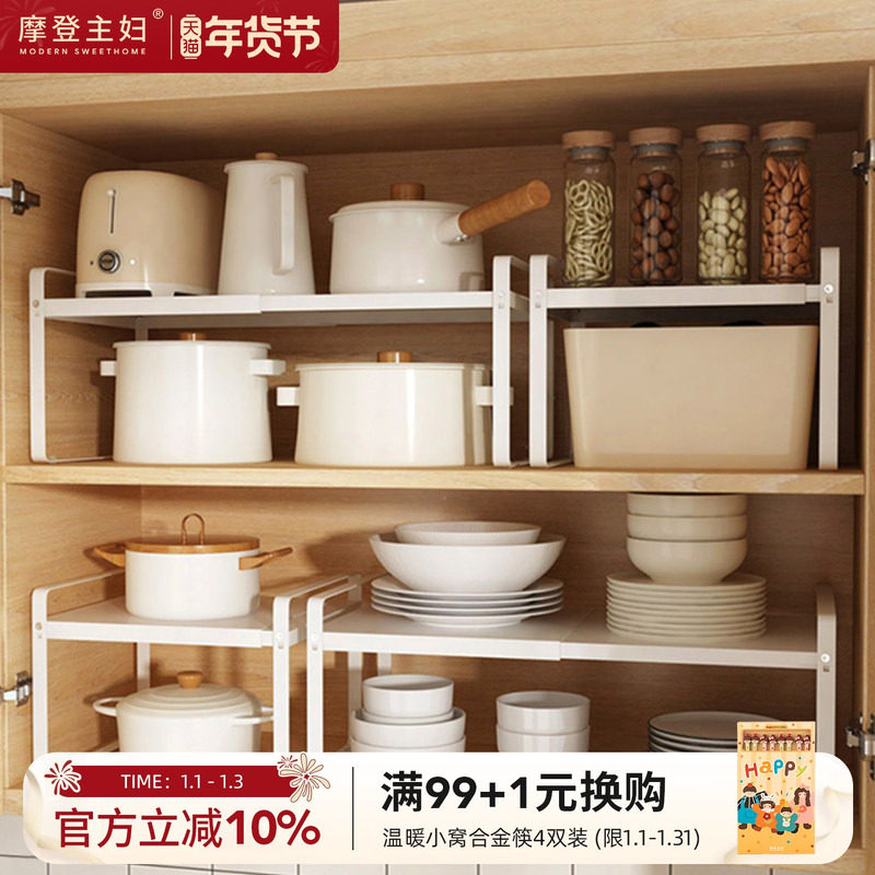 摩登主妇可伸缩置物架厨房隔板柜子橱柜内分层架子锅具调料收纳架