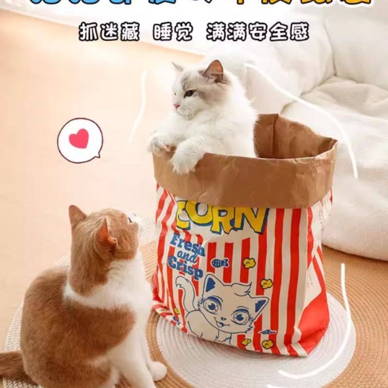 猫咪牛皮纸袋可爱益智减压逗猫捉迷藏袋四季用磨爪耐撕猫抓板玩具