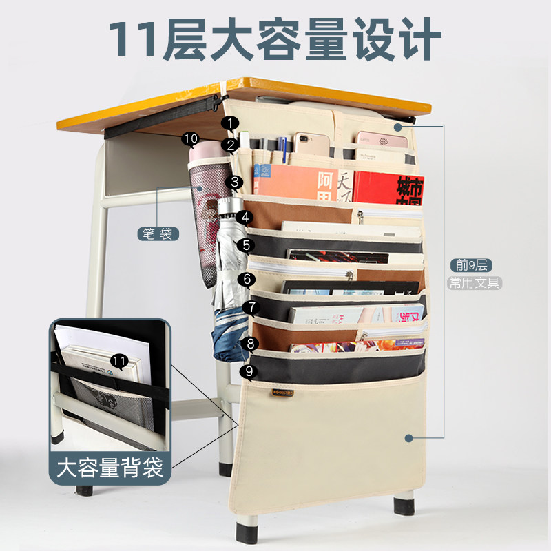 课桌收纳袋挂袋初中生书桌侧边挂书袋学生课桌书本收纳神器高中生教室放书的桌边书立挂架大容量多功能桌边带