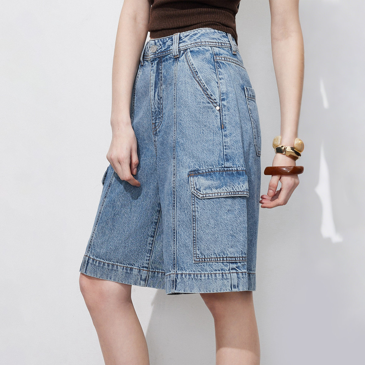 显瘦中裤线,实用工装口袋,提臀约克线