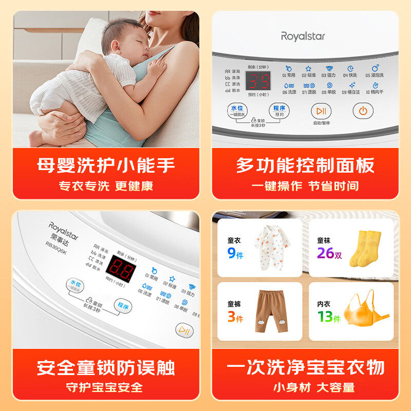 荣事达小型迷你全自动洗衣机3KG母婴杀菌宝宝用带烘干洗烘一体机
