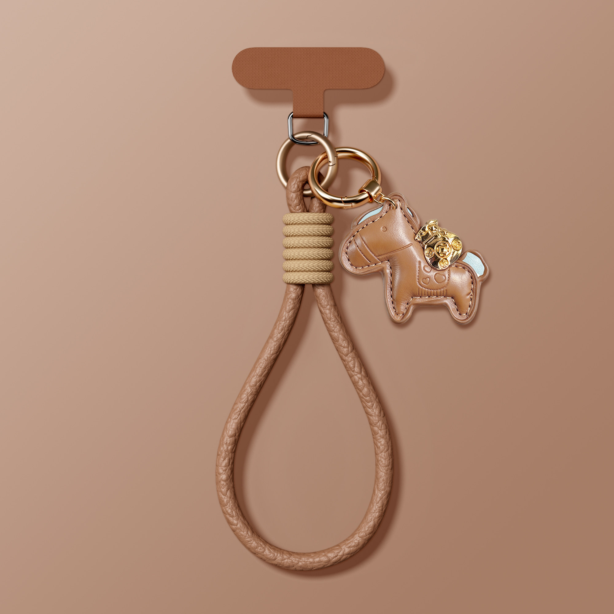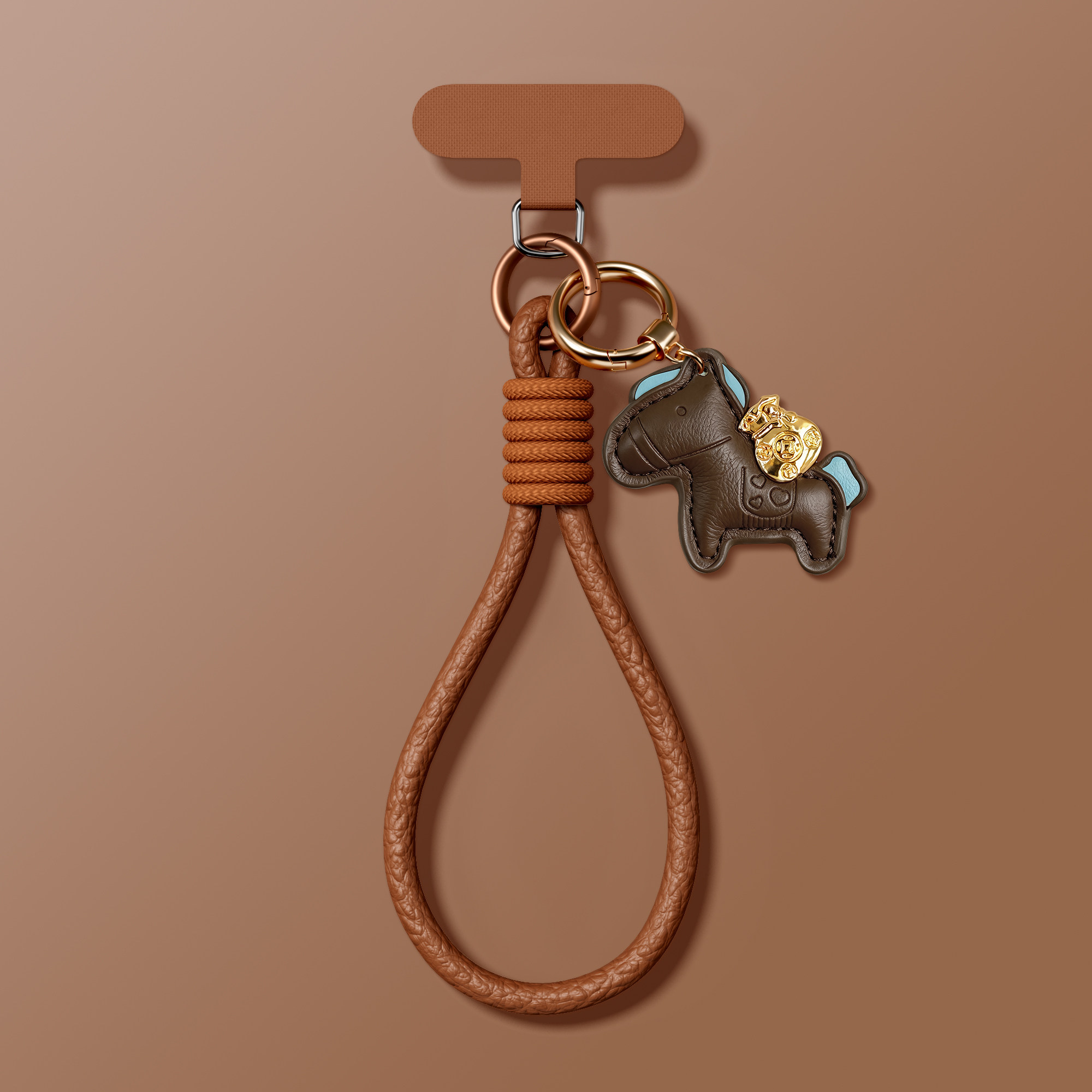 【高品质】马年中国红手机壳挂绳斜跨新款小马挂件马上有钱手腕编织短绳橙色便携适用苹果华为手机壳挂绳淇东