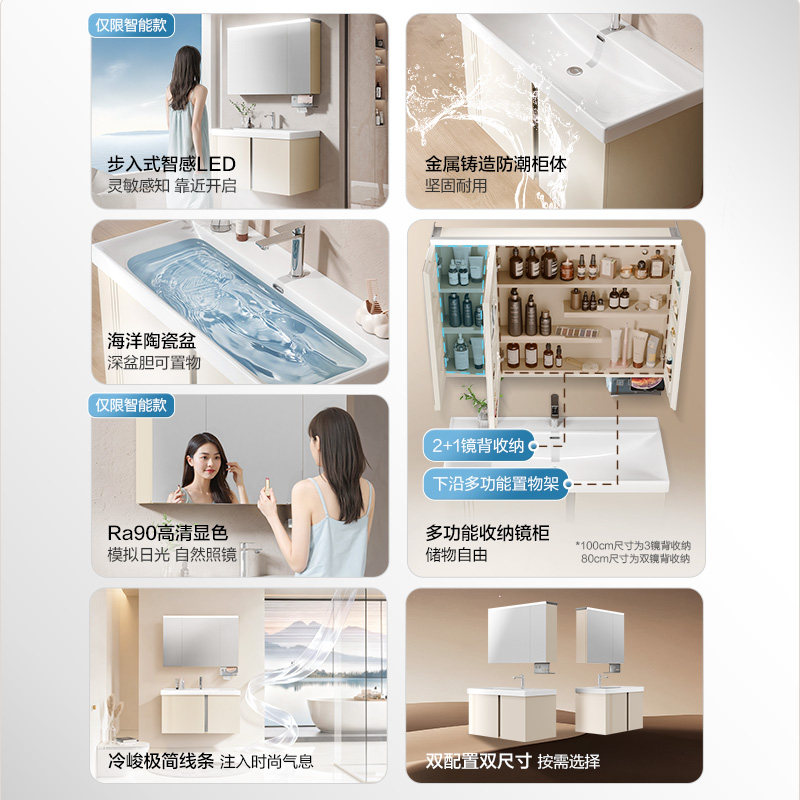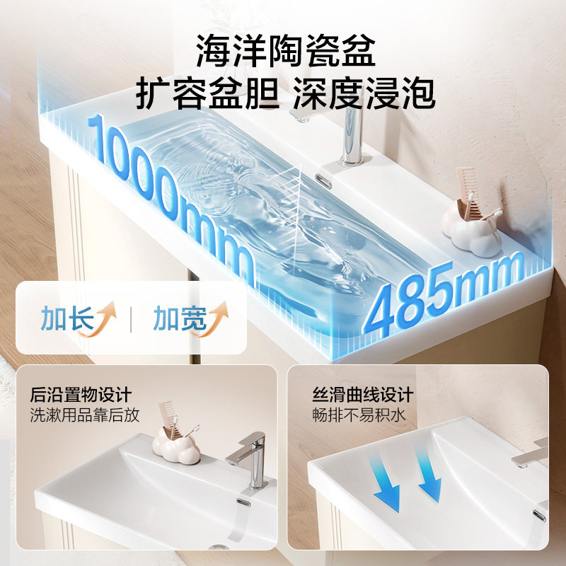 【直播补贴】恒洁蜂窝铝浴室柜组合陶瓷一体盆卫生间海洋盆洗漱台