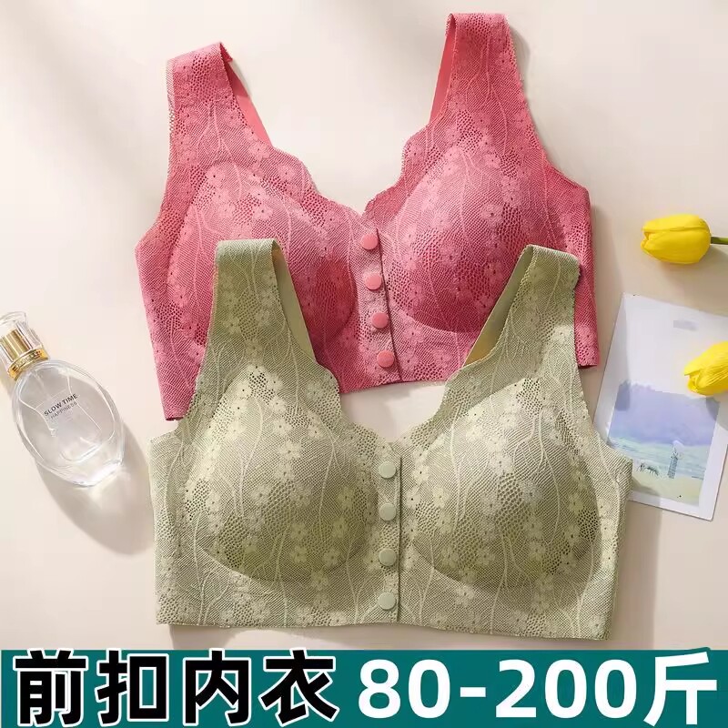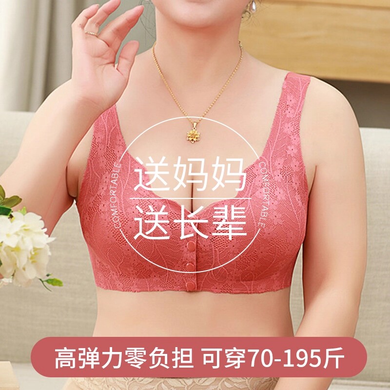 妈妈胸罩女中老年人收副乳无痕前扣蕾丝前开扣无钢圈文胸背心式