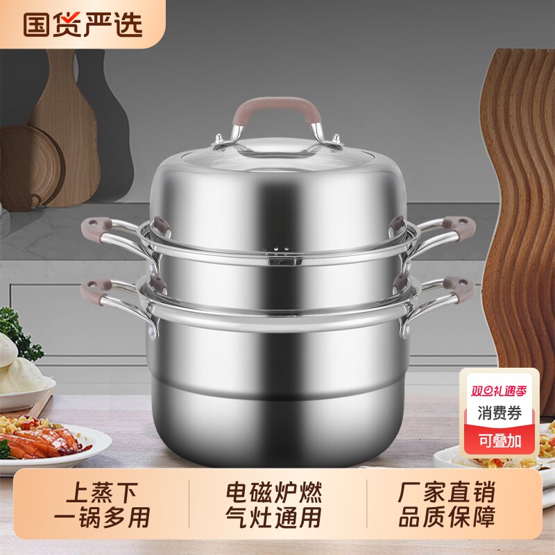赫巴兹 304食品级加厚不锈钢多层蒸锅家用2025新款蒸煮炖锅大容量