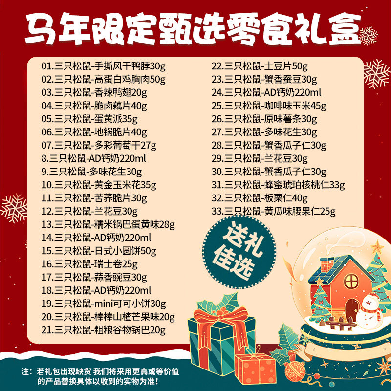 三只松鼠巨型零食大礼包30包送礼品儿童坚果礼盒小吃圣诞生日礼物