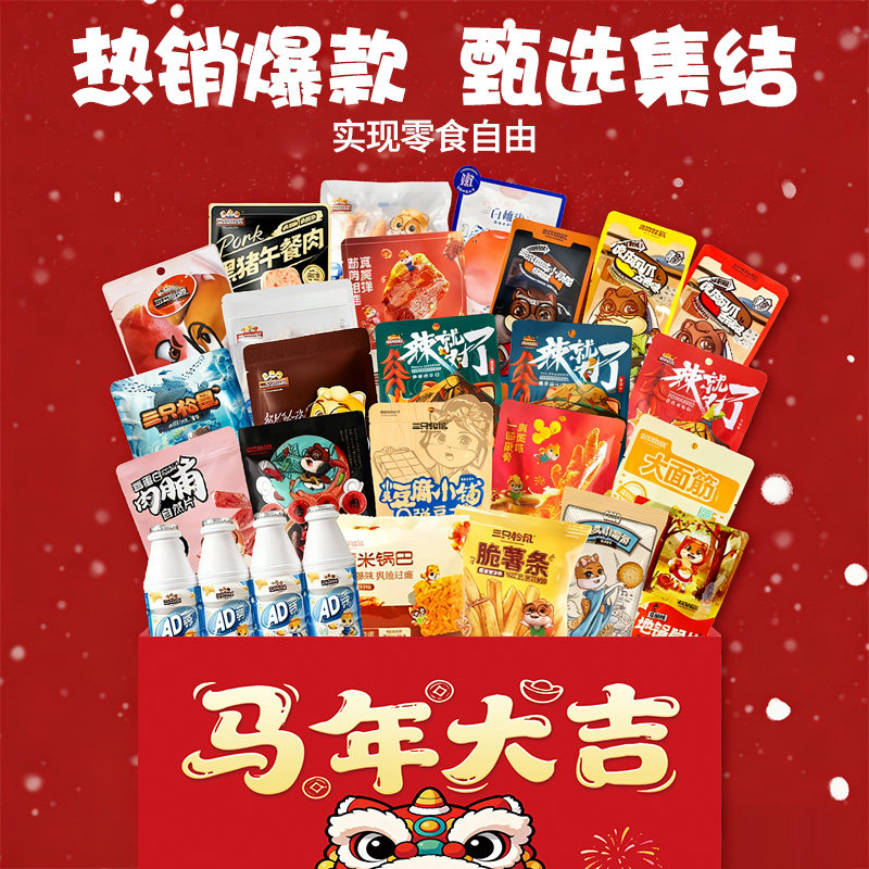 新年零食大礼包送女友儿童礼物卤味小吃膨化食品礼盒过年送礼马年