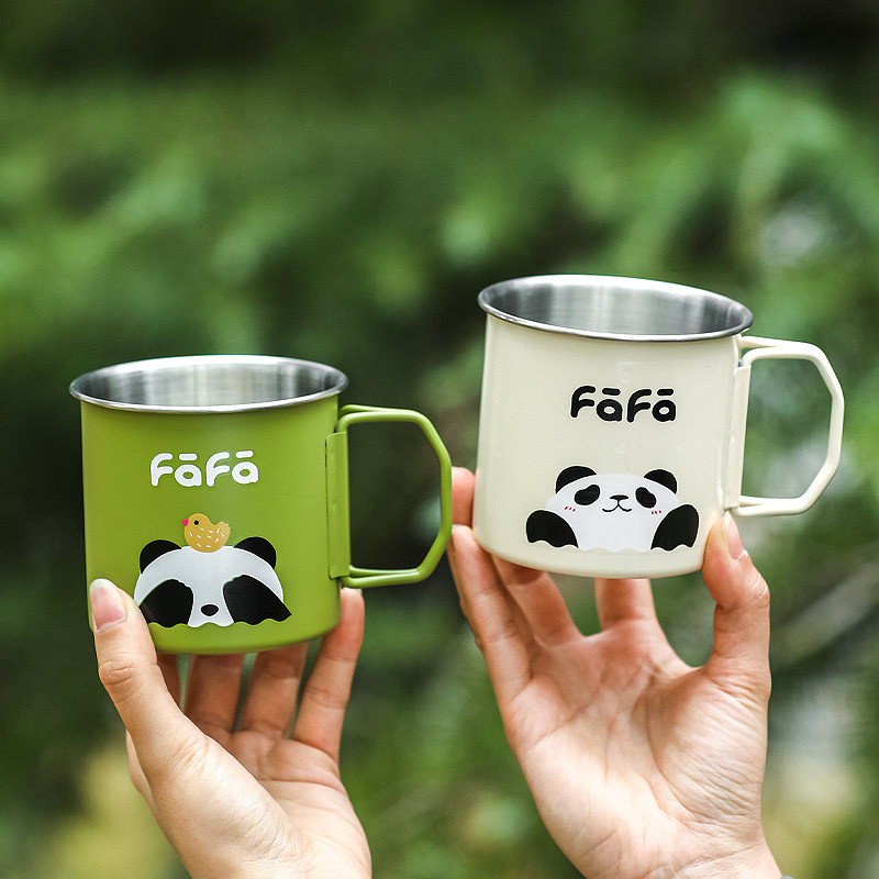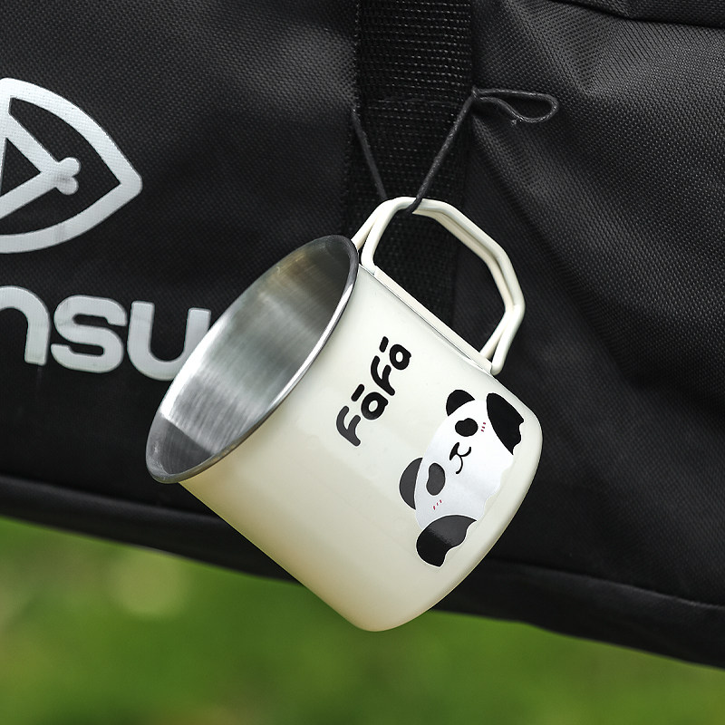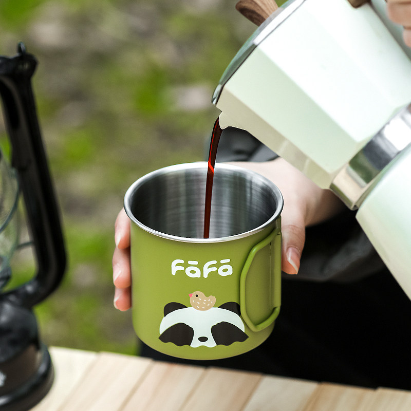 川岛屋熊猫不锈钢咖啡杯外出携带便携杯子折叠水杯户外露营马克杯