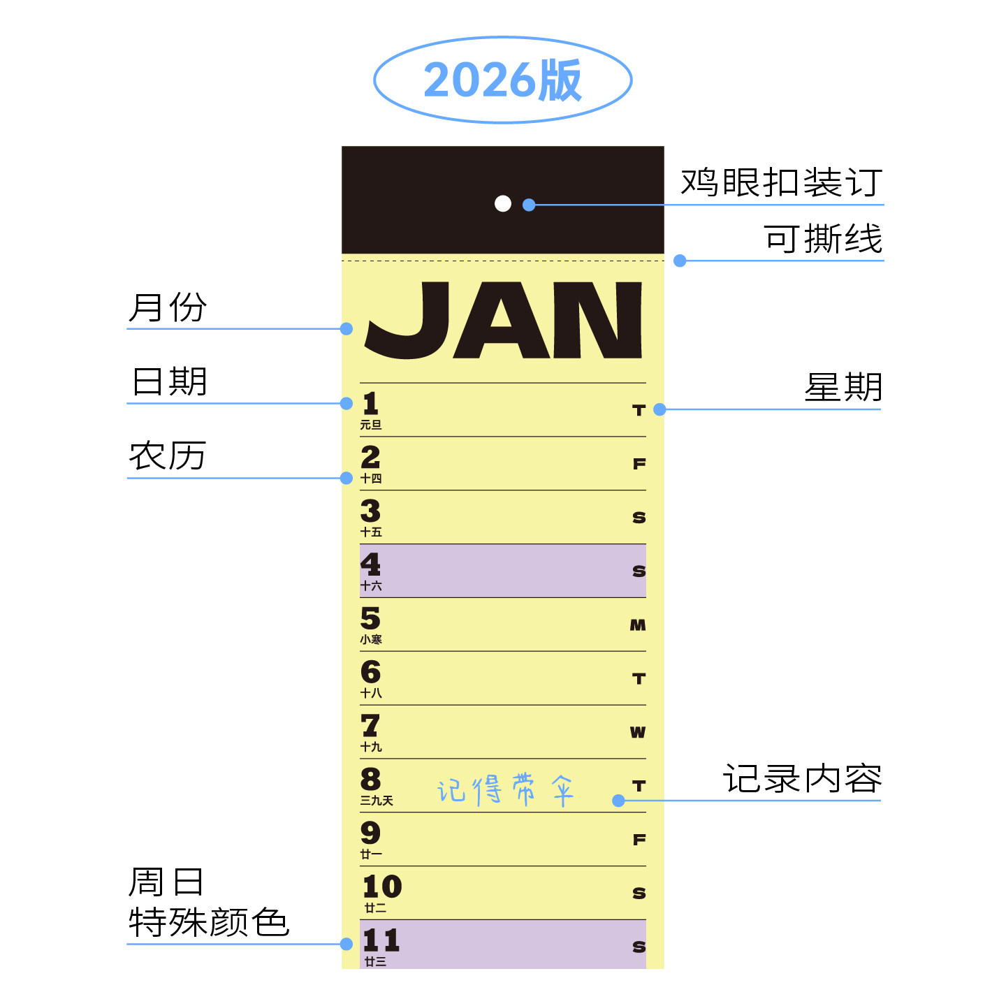 长条可撕月历2026新款日历易挂创意马年装饰英文跨境规划翻页每日计划打卡自律记录事备忘设计定做订制
