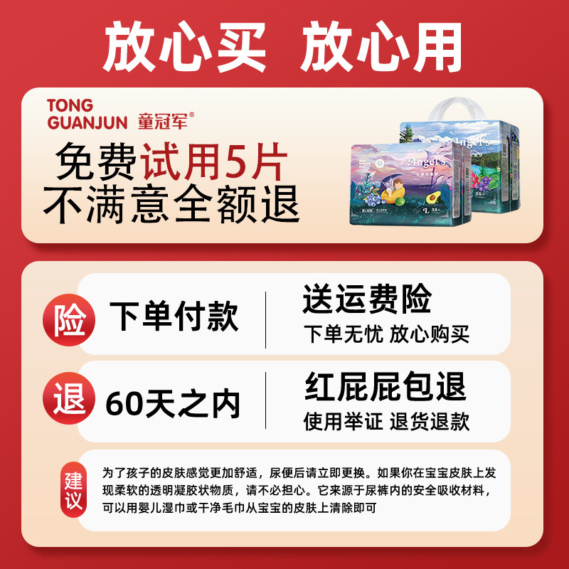 童冠军拉拉裤6XL大码中大儿童纸尿裤5XL夜用男女宝宝夜用尿不湿