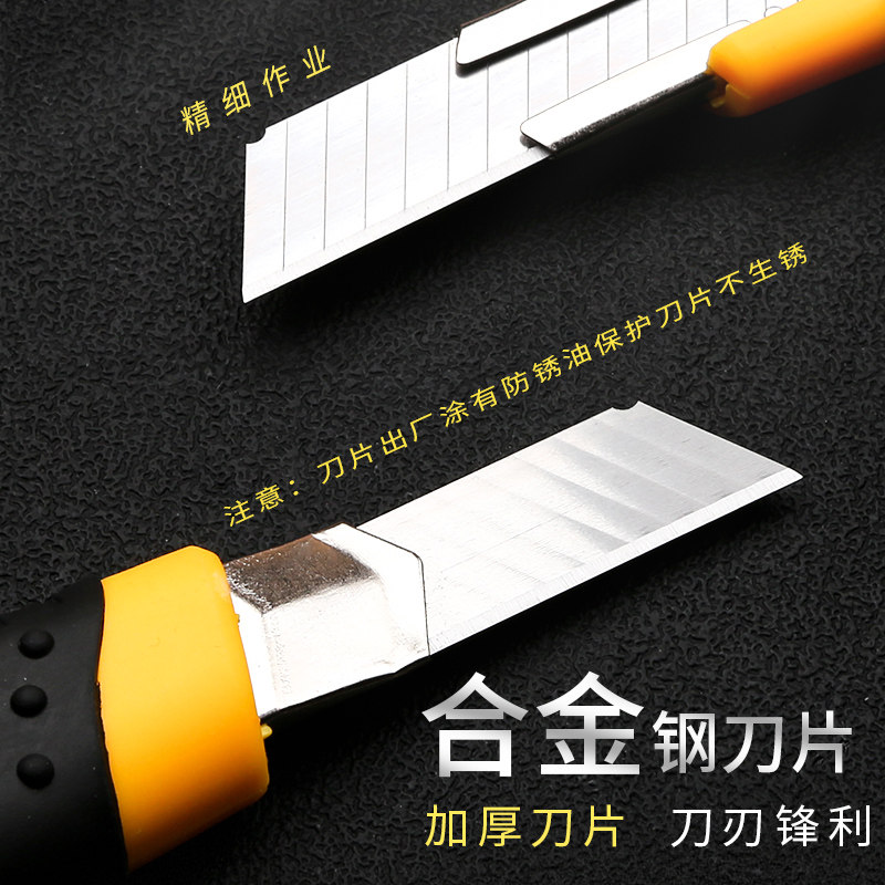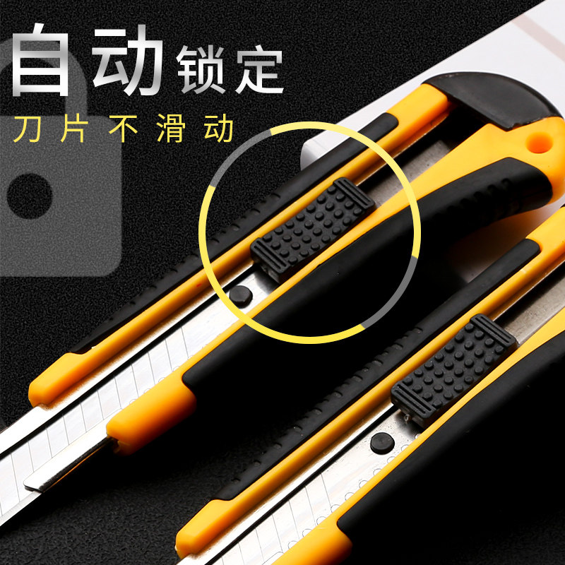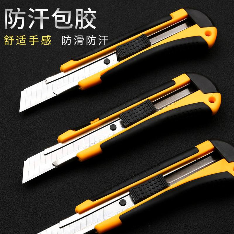 包胶美工刀黑刃刀片大号拆快递开箱裁纸用壁纸刀加厚高碳钢多功能拆切工业专用刀推锁设计不易脱落锋利刀刃K1