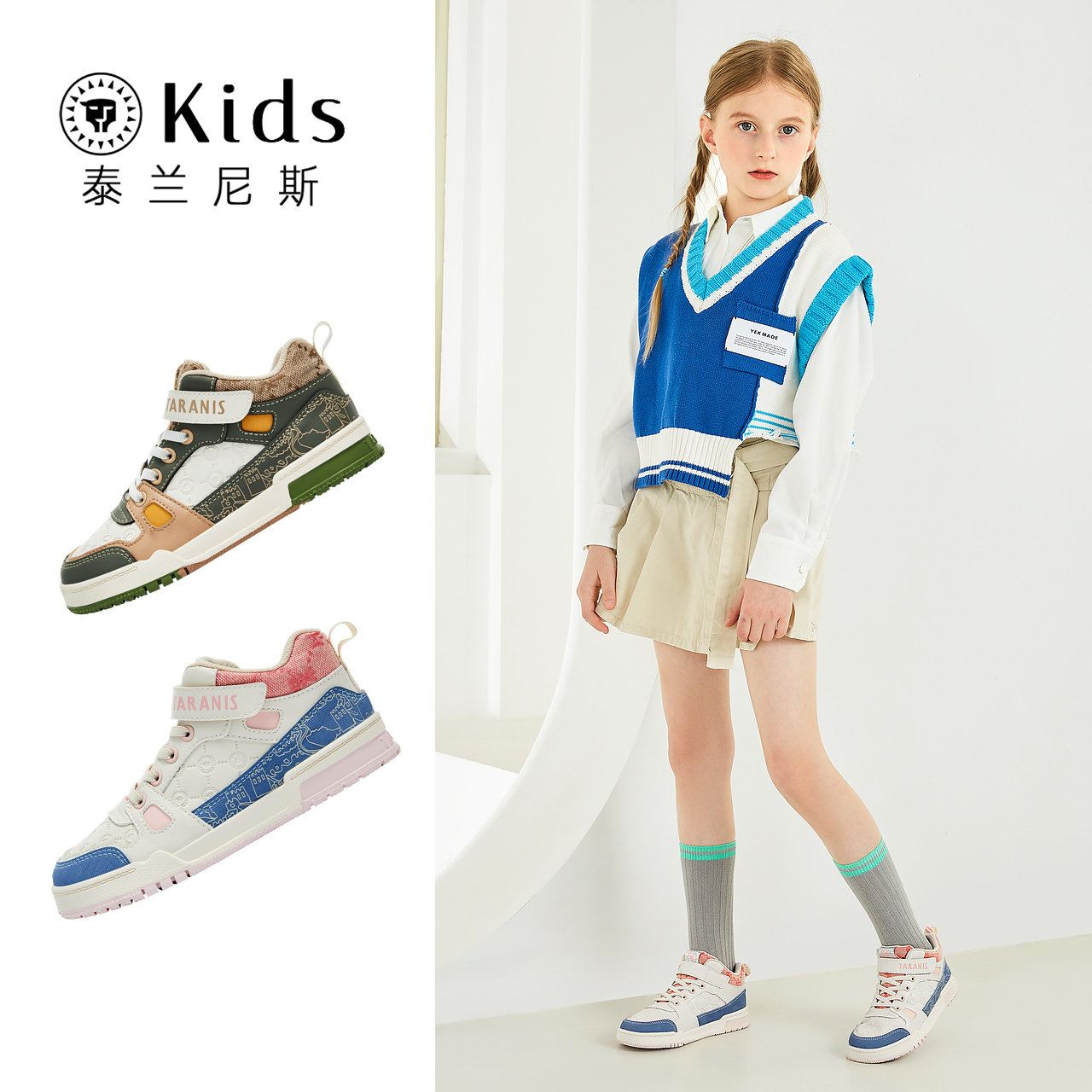 泰兰尼斯kids儿童板鞋低帮秋季新款潮流撞色中大童轻便复古休闲鞋