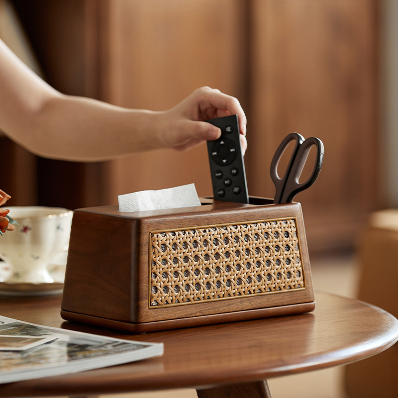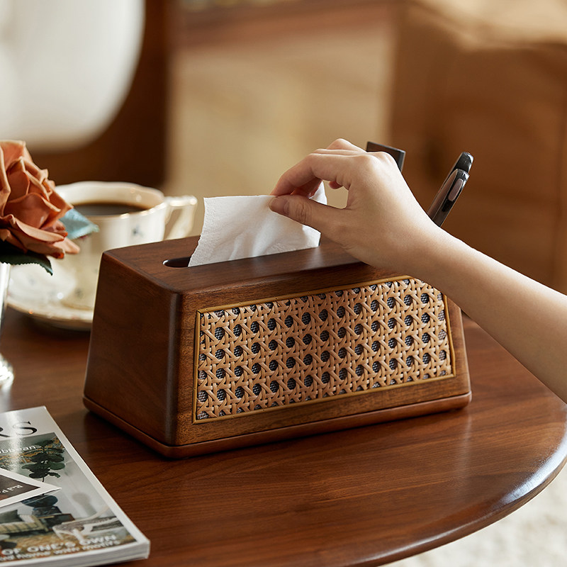 木纹纸巾盒家用客厅轻奢高档中古风抽纸盒高级感复古茶几收纳盒