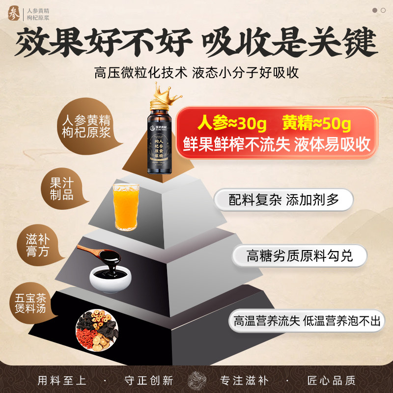 国药人参黄精枸杞100%原浆男肾固补精熬夜宁夏中宁红黑枸杞原浆