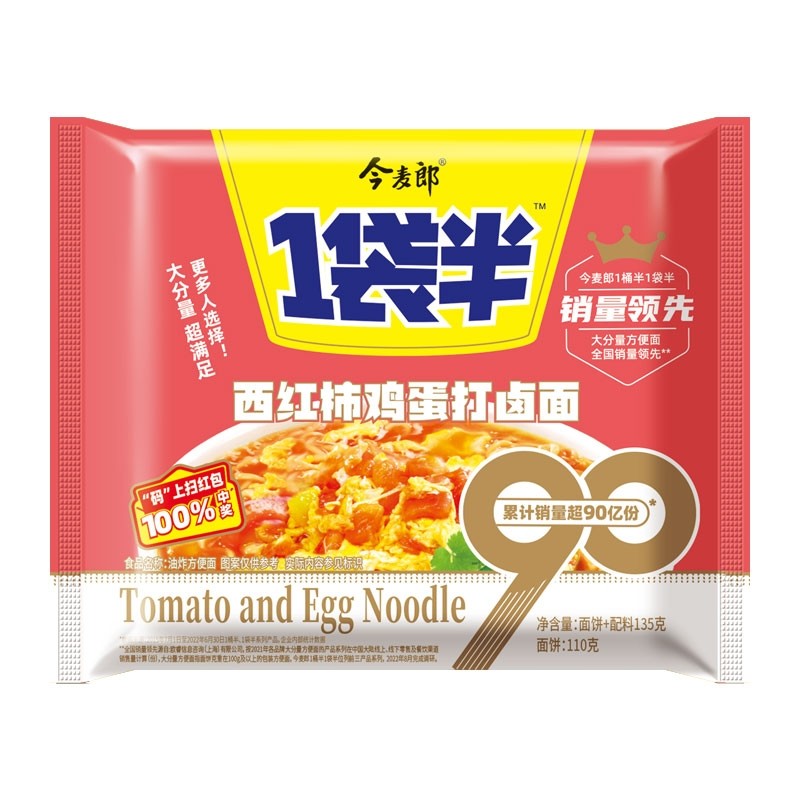 今麦郎方便面一袋半西红柿鸡蛋打卤面袋装整箱泡面办公室宿舍速食