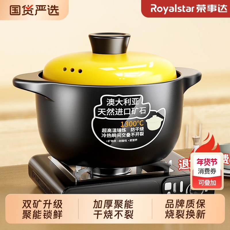 荣事达砂锅煲家用燃气煲仔饭耐高温干烧陶瓷锅炖锅汤锅沙锅养生