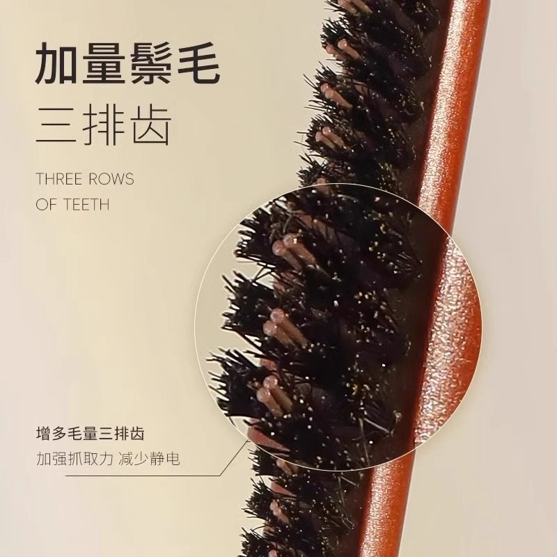 猪鬃毛窄齿梳美发三排打毛梳子蓬松造型长柄化妆尖尾盘发卷发木梳
