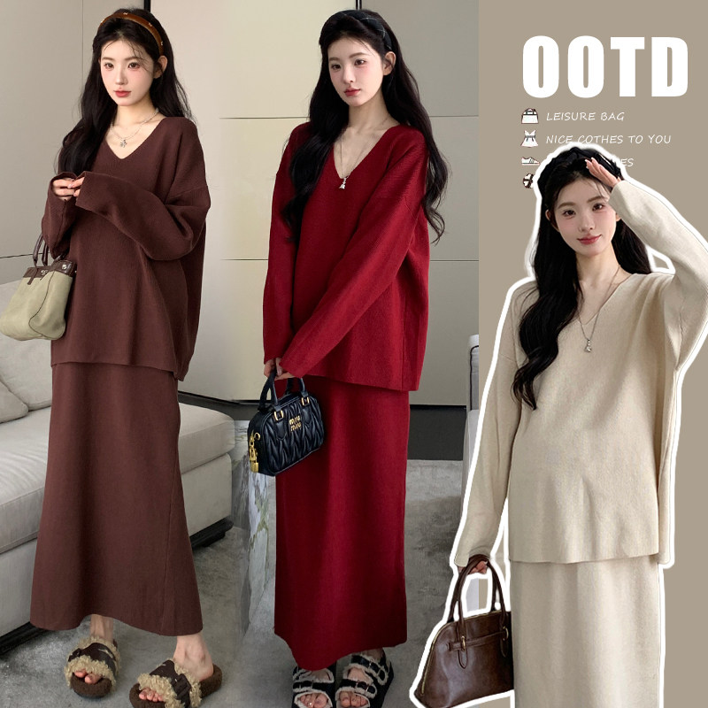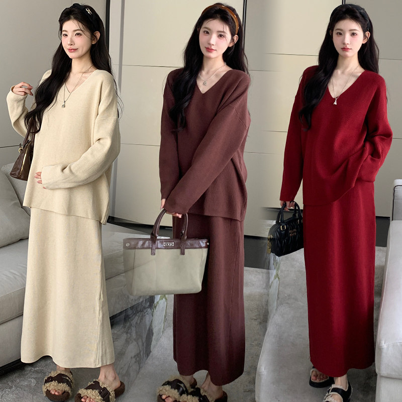 婧麒孕妇套装孕期洋气冬装孕妇装秋套装2025新款秋冬高级上衣半裙