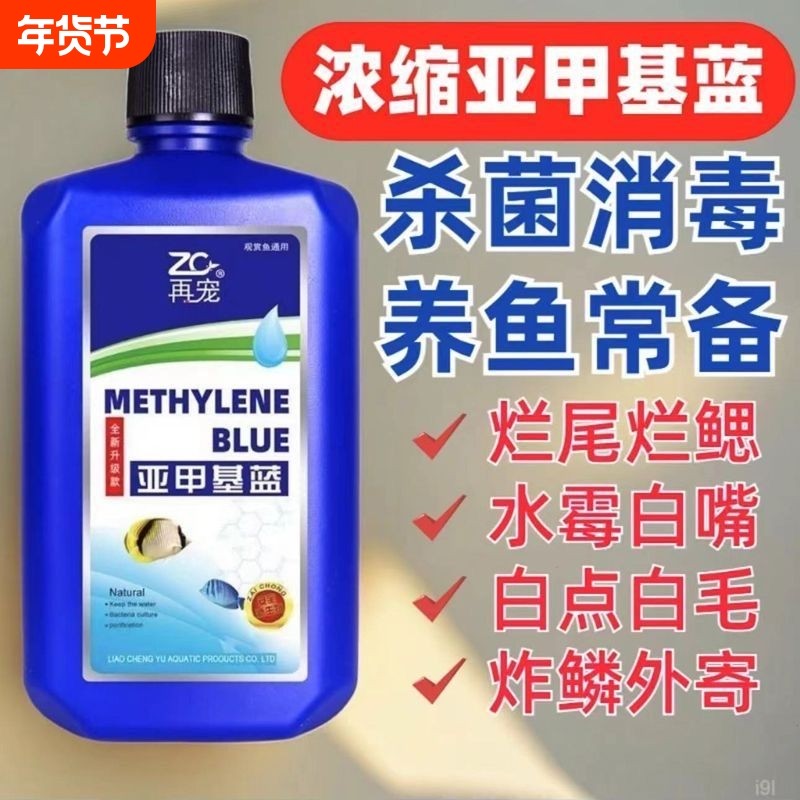 观赏鱼烂尾专用白点锦鲤专治金鱼药非鱼药鱼缸消毒亚甲基蓝养鱼