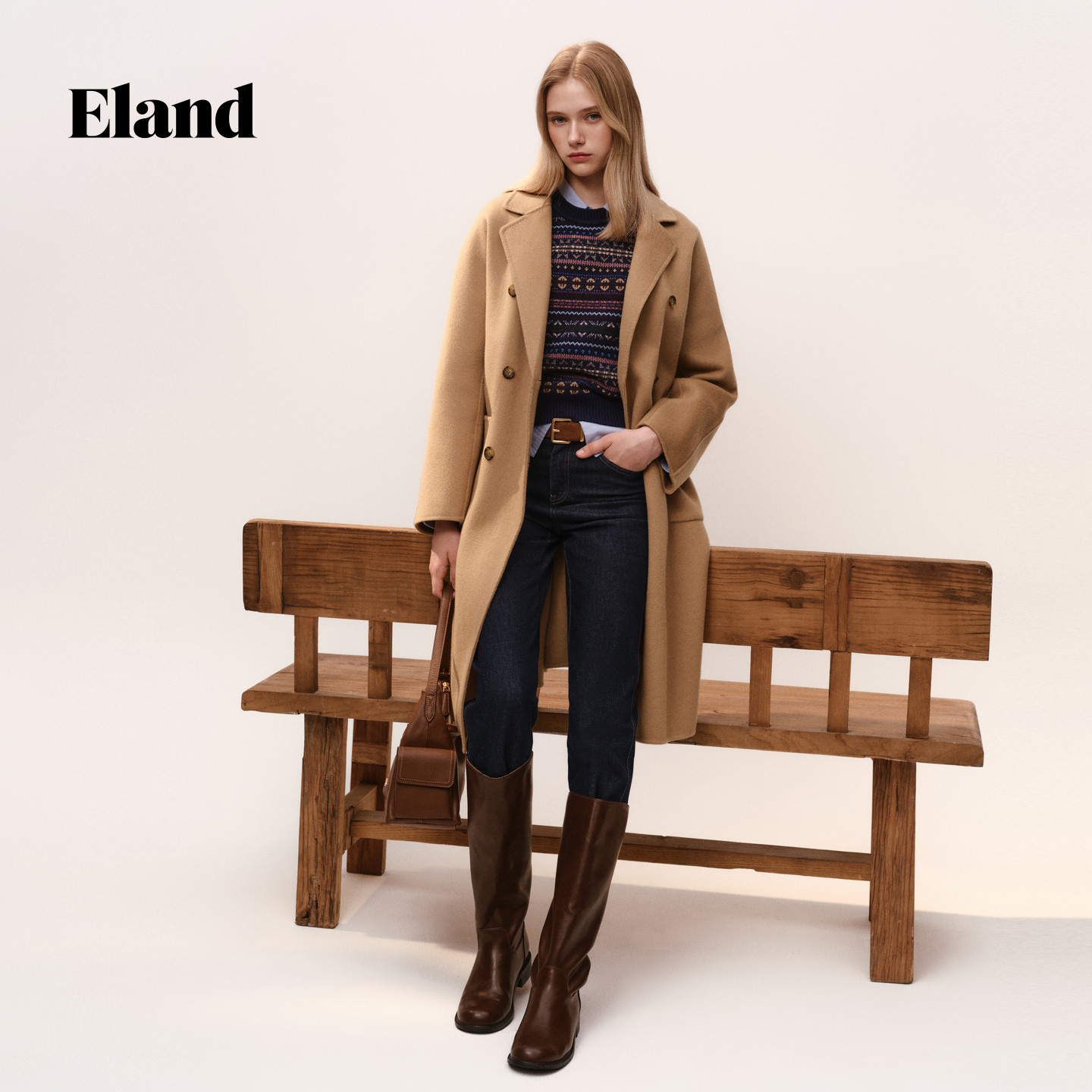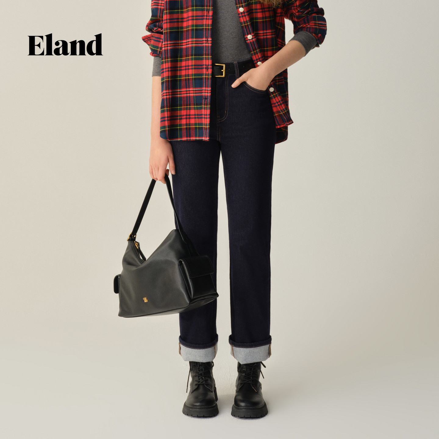 Eland衣恋牛仔裤女基础款休闲棉质保暖直筒裤2025冬季新款