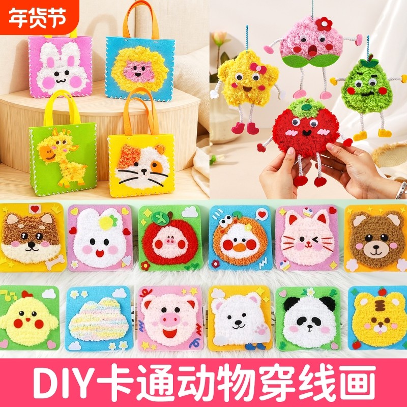儿童手工缝缝乐创意毛线刺绣画小学生制作材料包diy女孩戳戳玩具