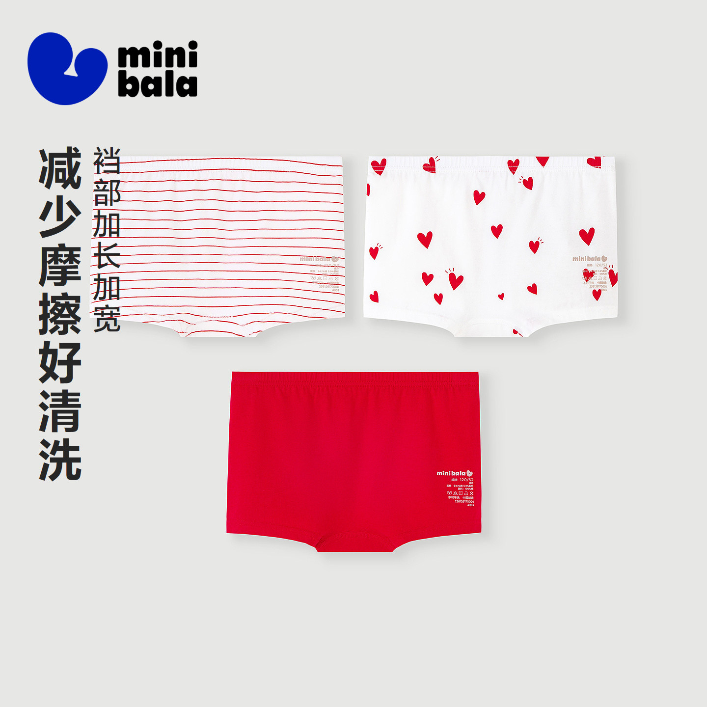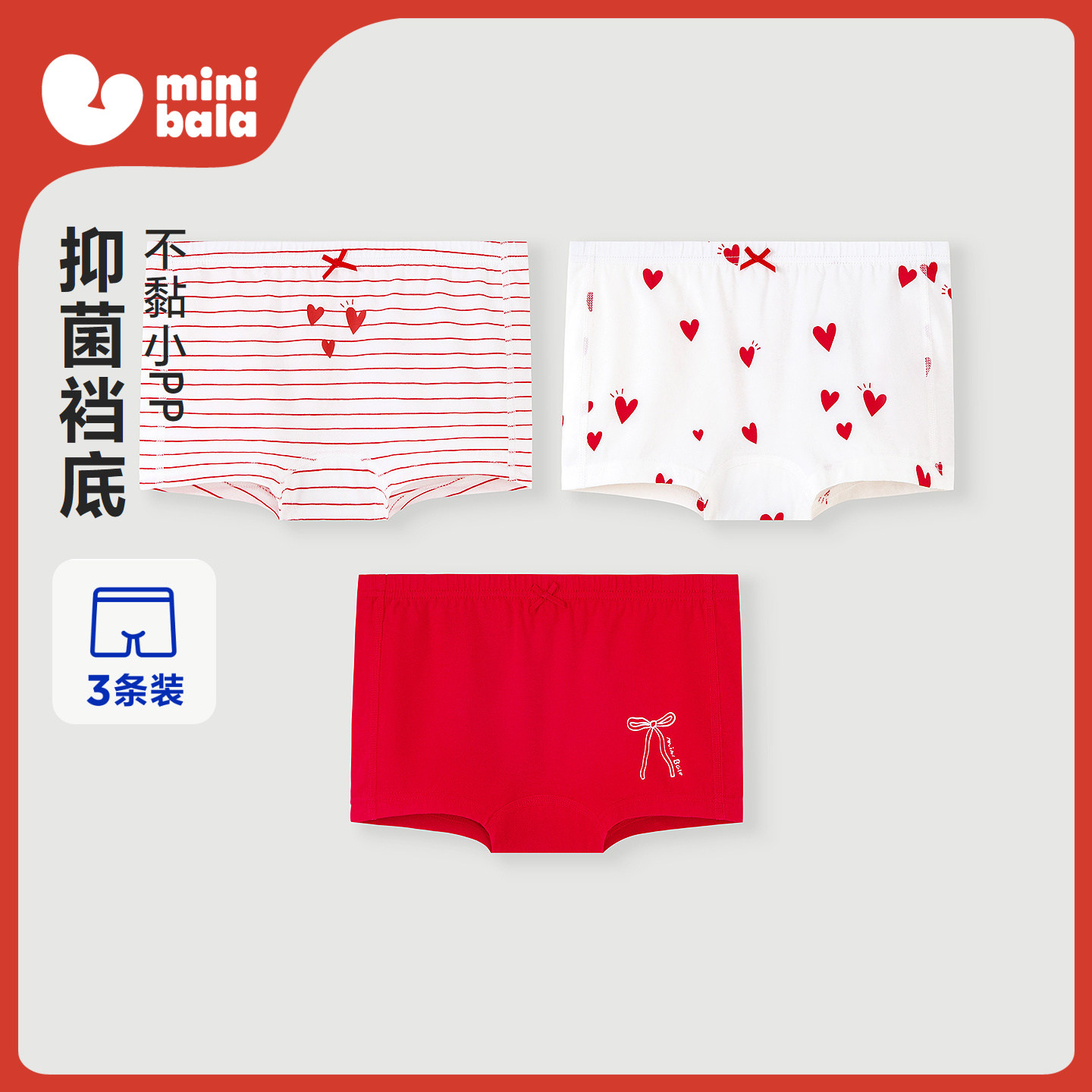 迷你巴拉巴拉儿童内裤女童宝宝印花平角短裤透气红色本命年3条装