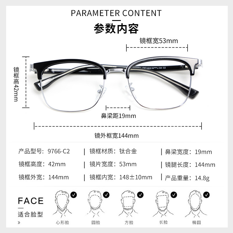 德国纯钛半框近视眼镜男款可配度数商务简约防蓝光镜片超轻镜架女