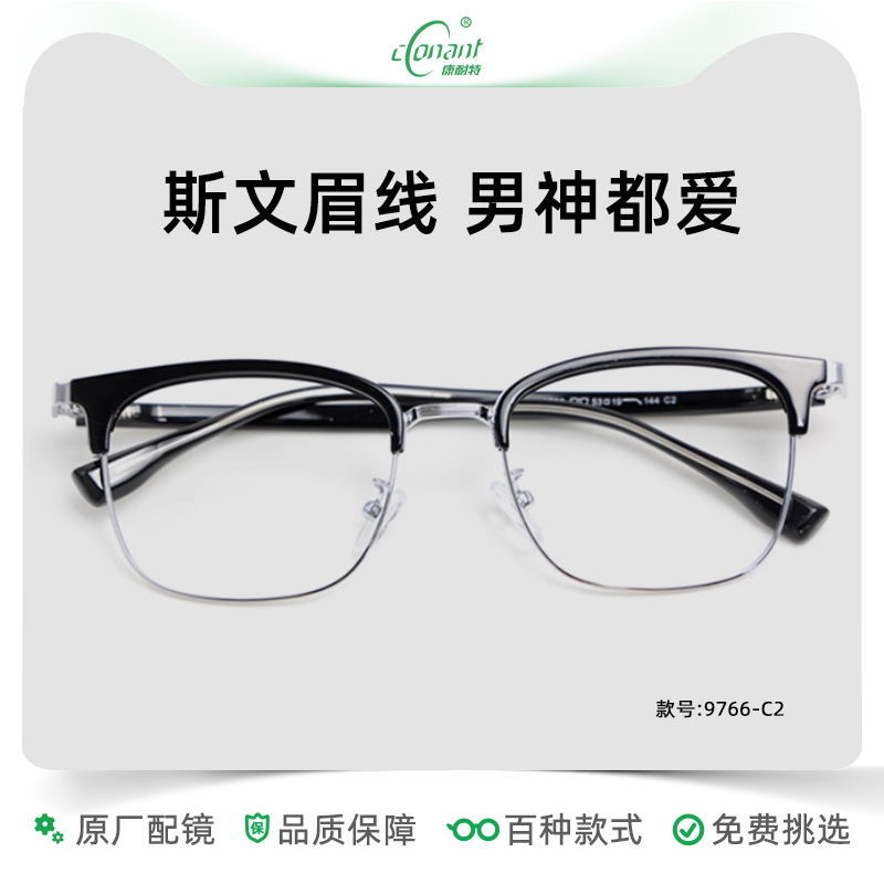 康耐特Conant非球面近视眼镜片配学院风斯文眉线框眼镜144