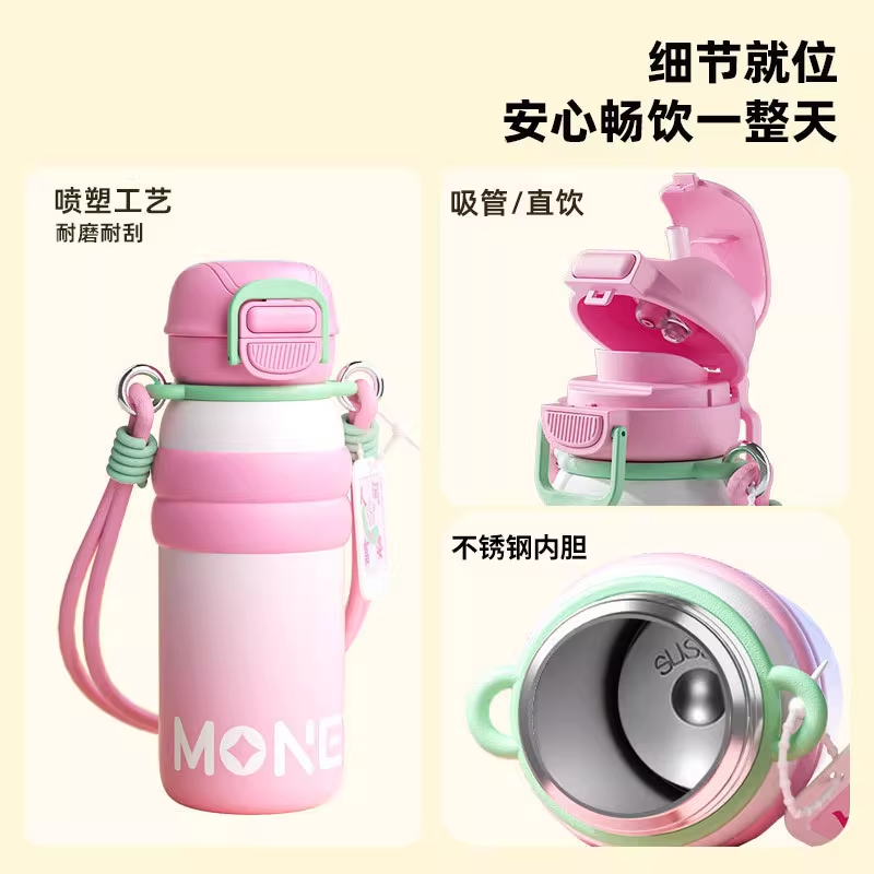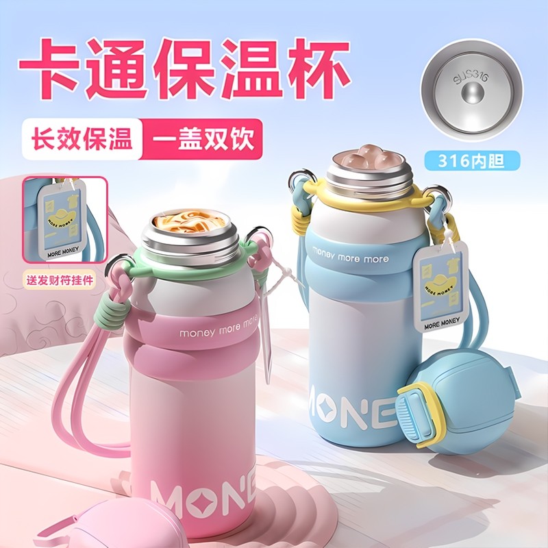 儿童保温杯女316不锈钢新款吸管水杯男小学生上学专用便携壶杯子
