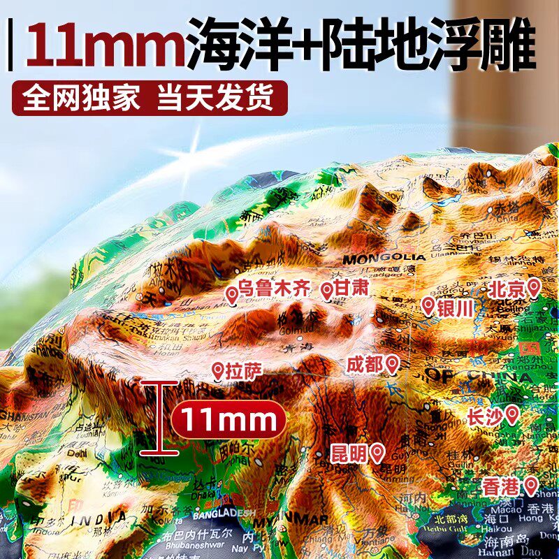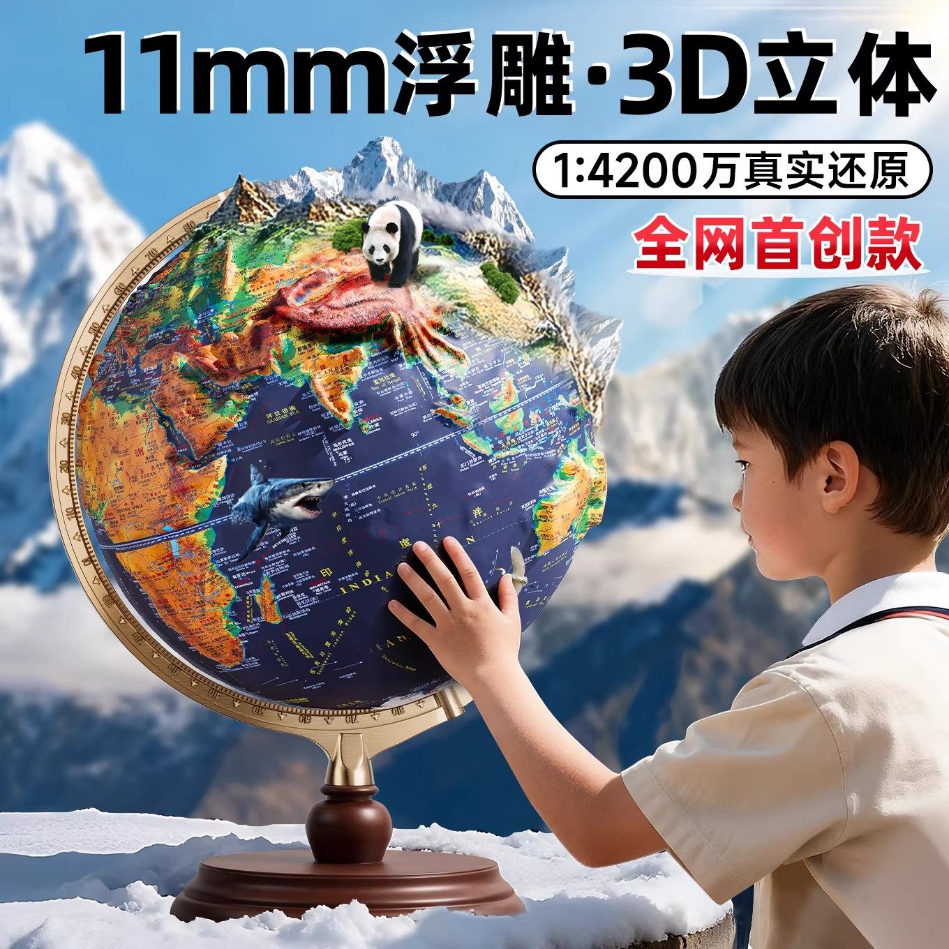 地球仪3d立体悬浮凹凸2025年新款正版学生用初中生小学生专用儿童启蒙大号模型办公室浮雕地形高档轻奢摆件