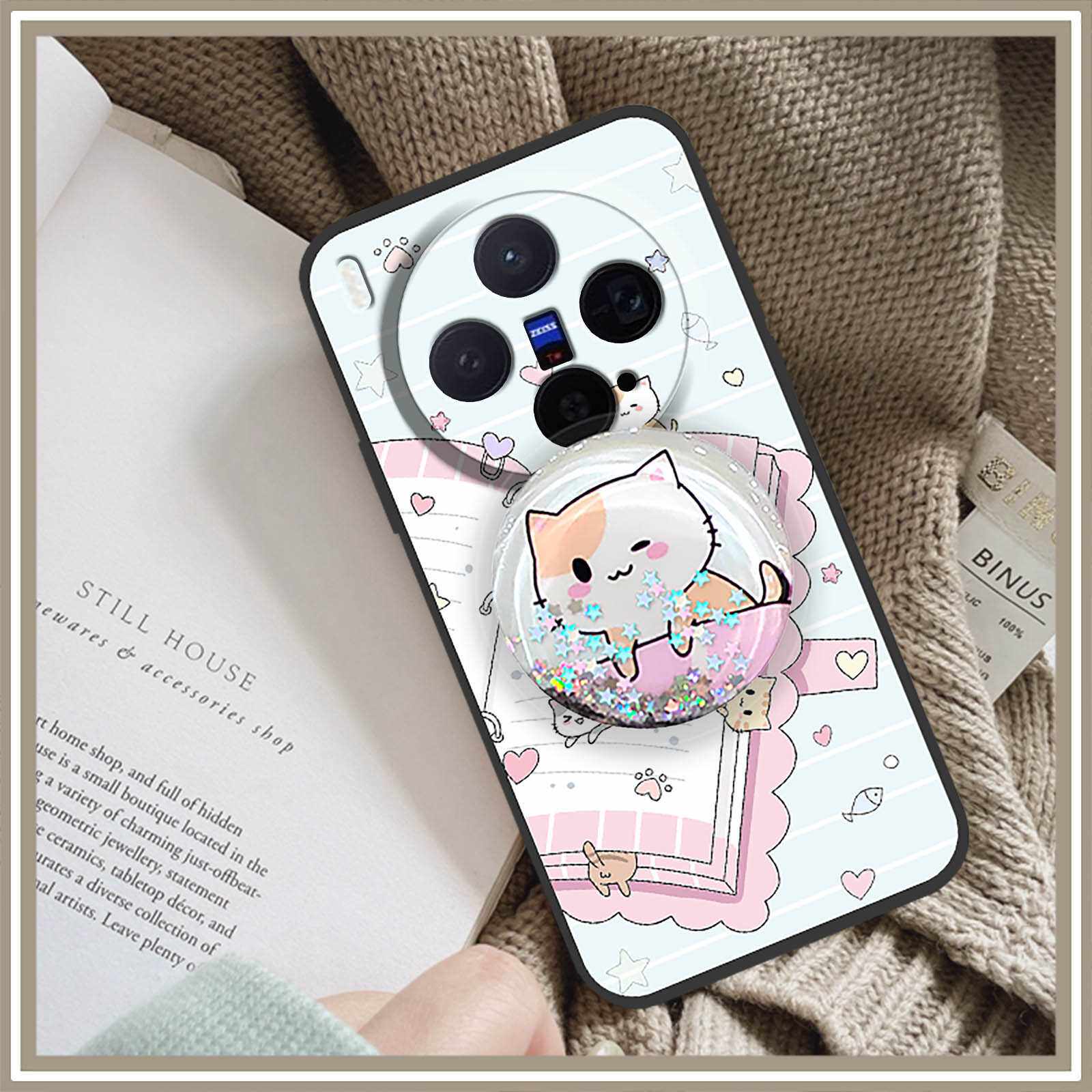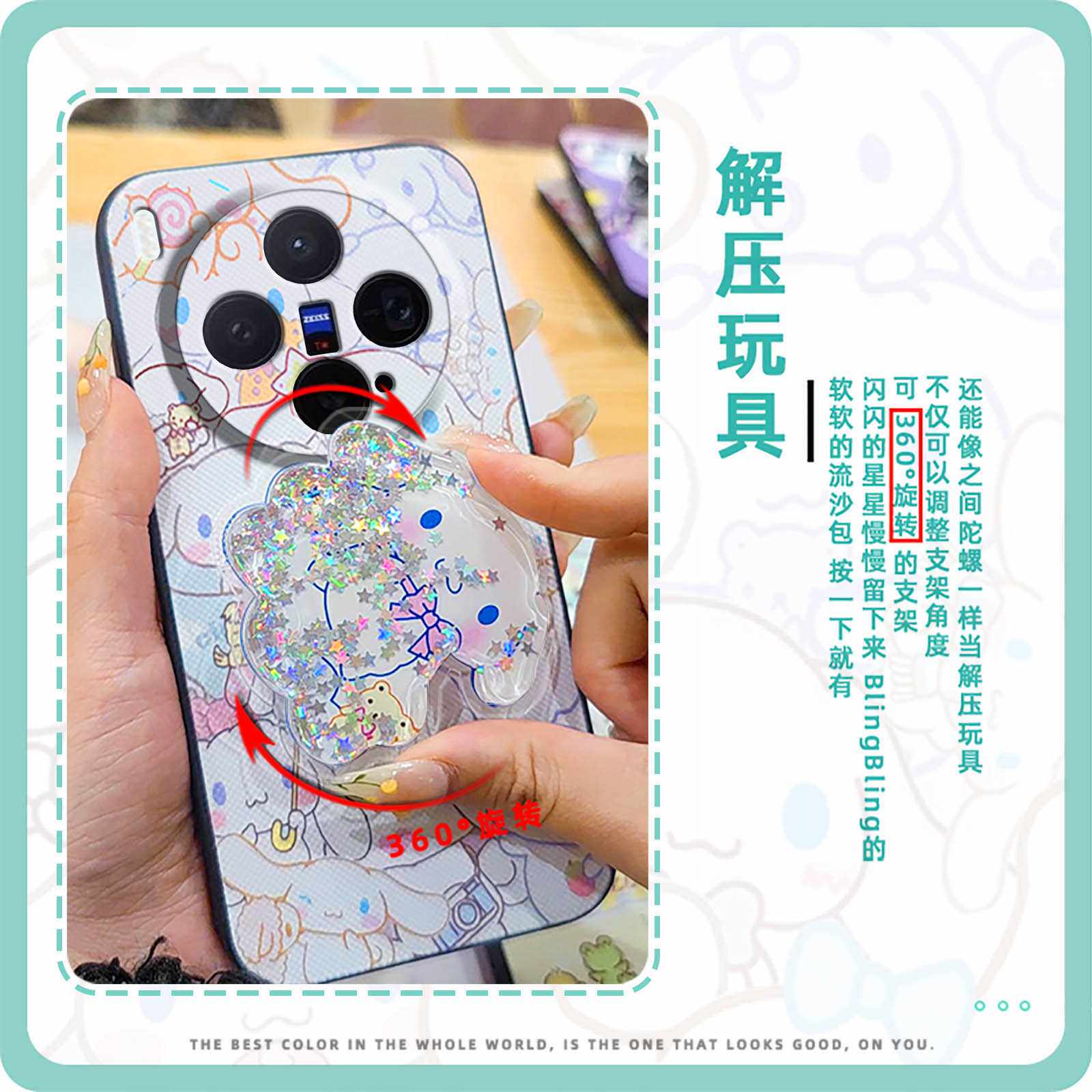 适用VIVO X300手机壳卡通旋转流沙支架防尘质感青春硅胶潮流趣味