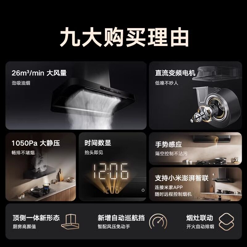 小米米家欧式油烟机S10家用厨房抽吸油烟机大吸力03变频降噪手势