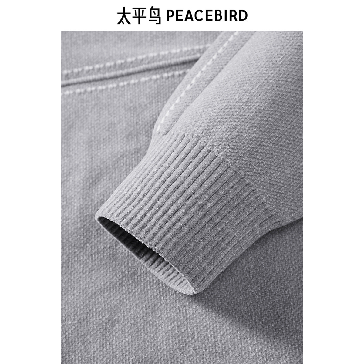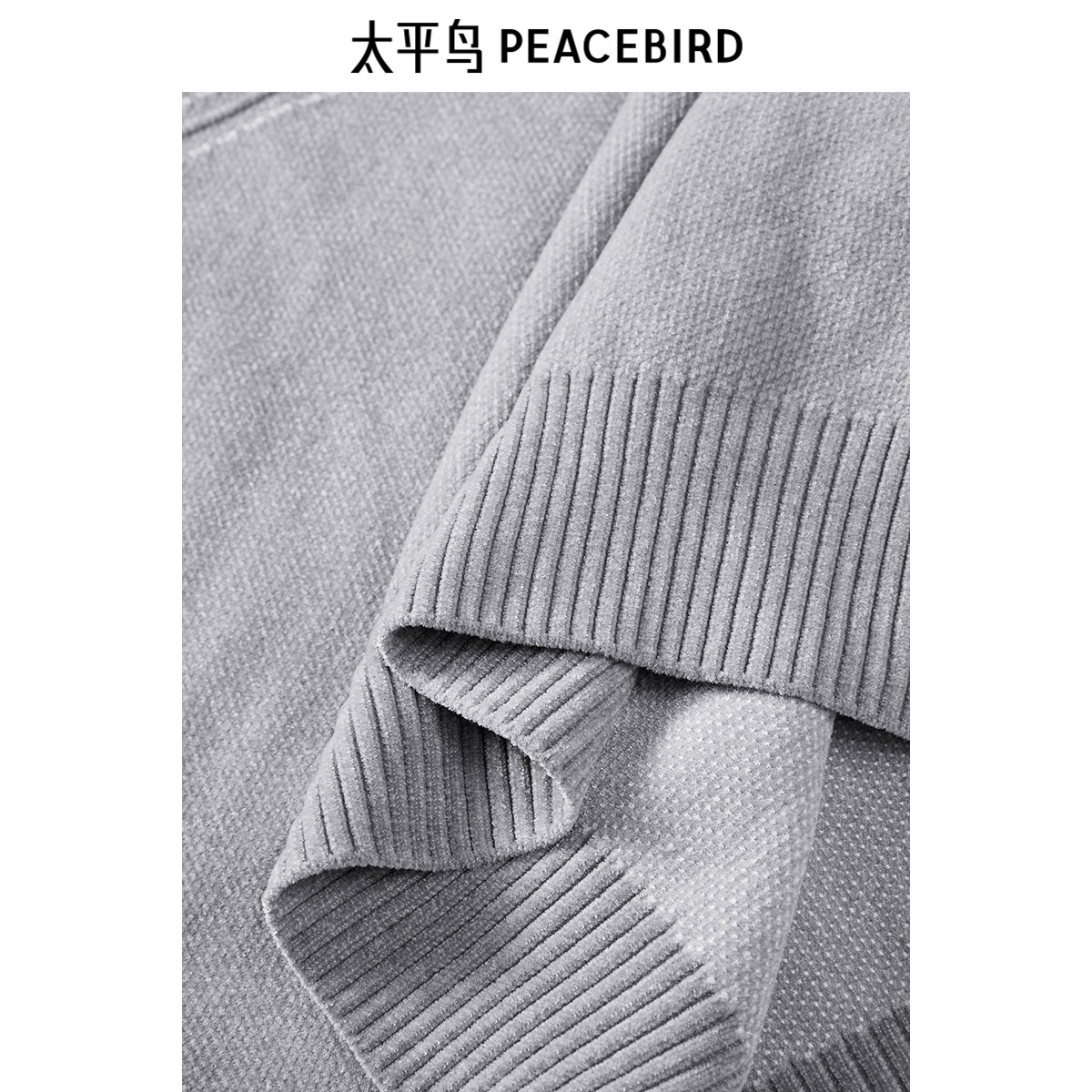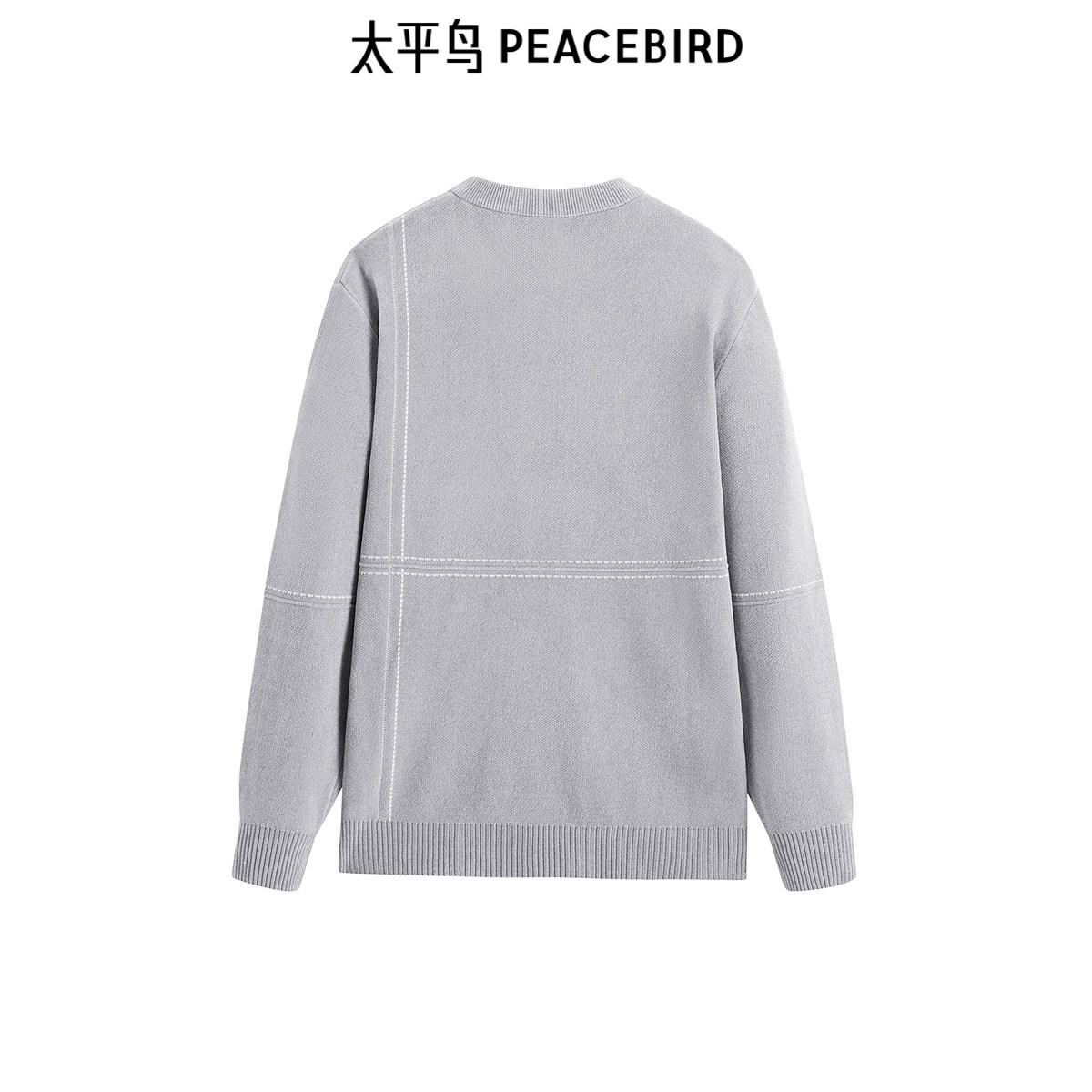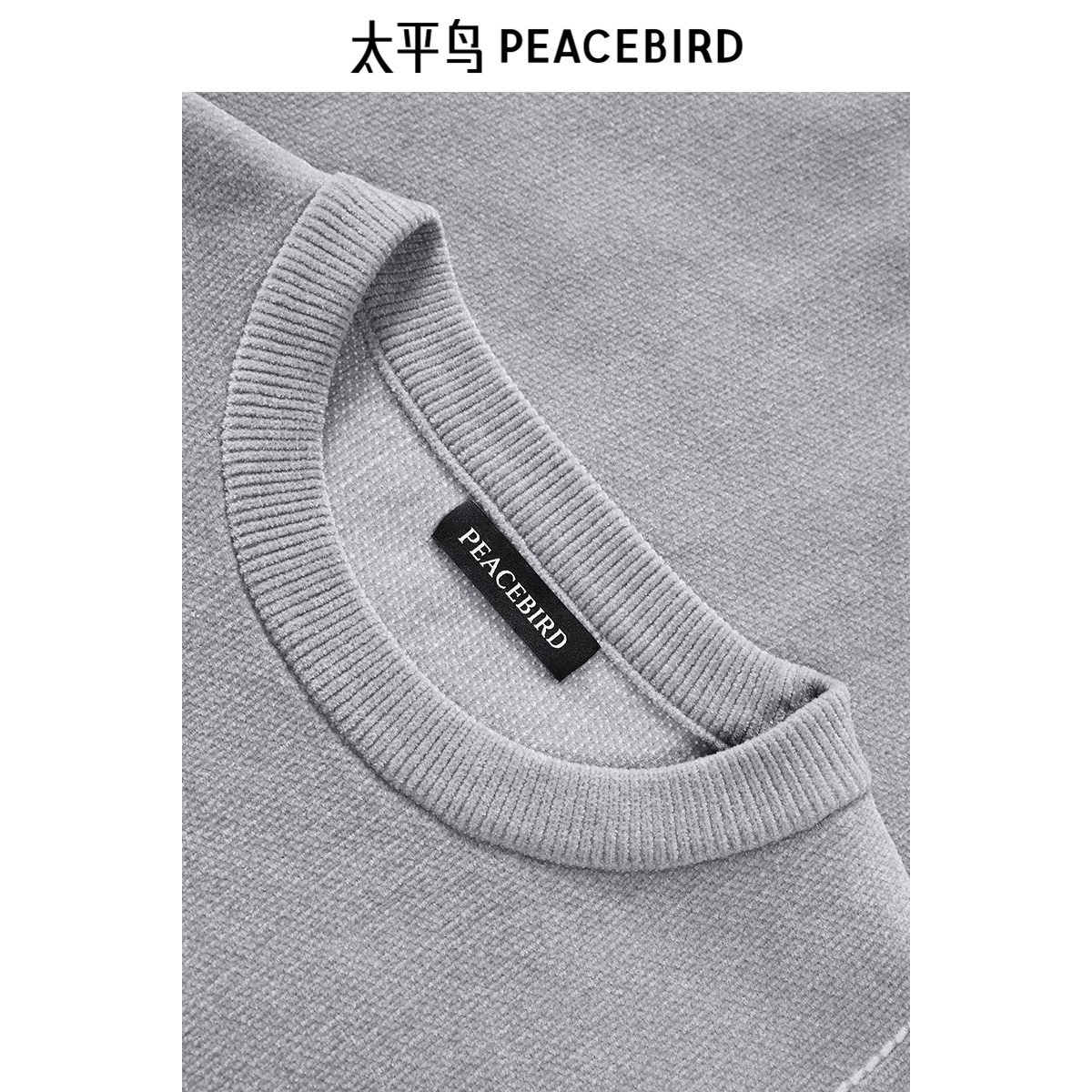 太平鸟男装毛衣冬季雪尼尔保暖针织衫潮牌撞色缝线圆领套头毛衣