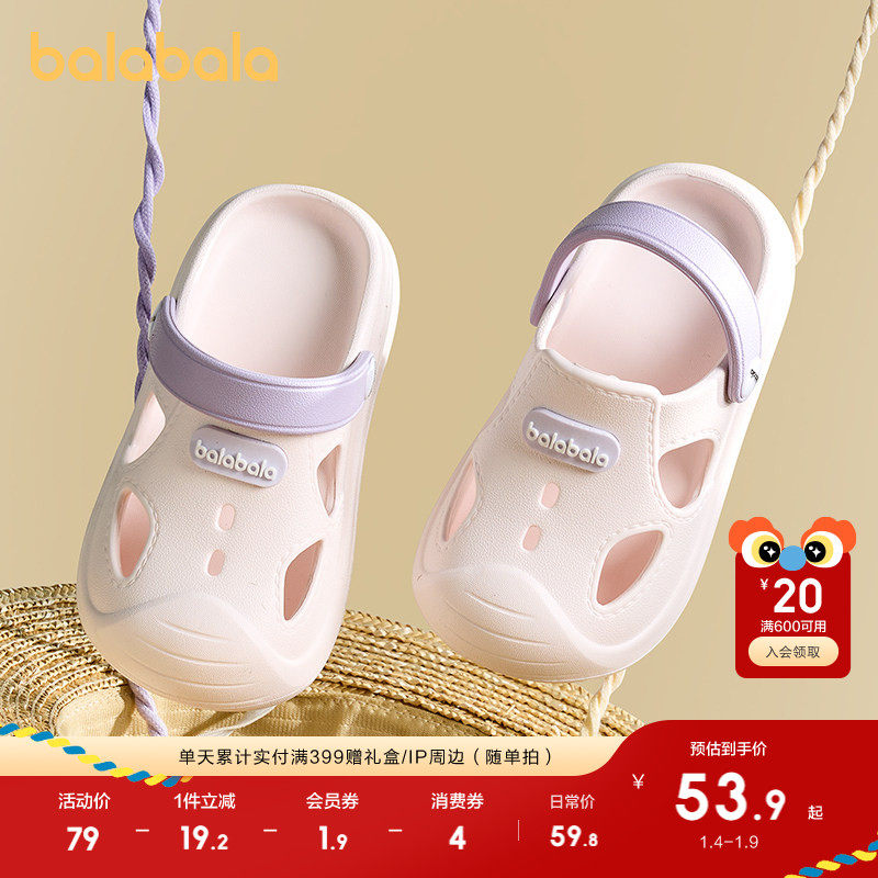 巴拉巴拉童鞋儿童洞洞鞋男童女童凉拖鞋防滑2025夏季新款鞋子女孩